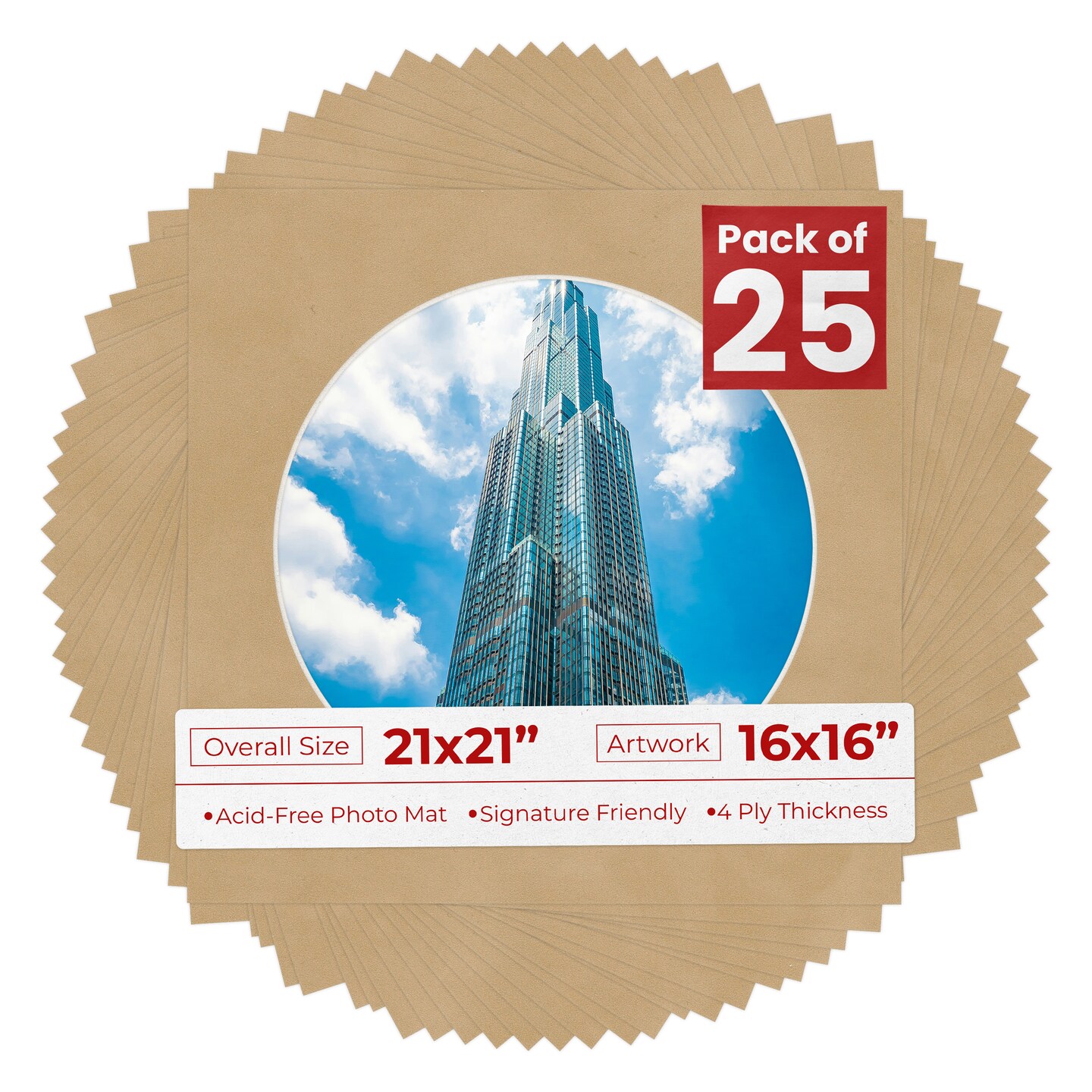 Beige Suede Mat Board for 21x21 Frames - Circle Opening for 16x16 Photos