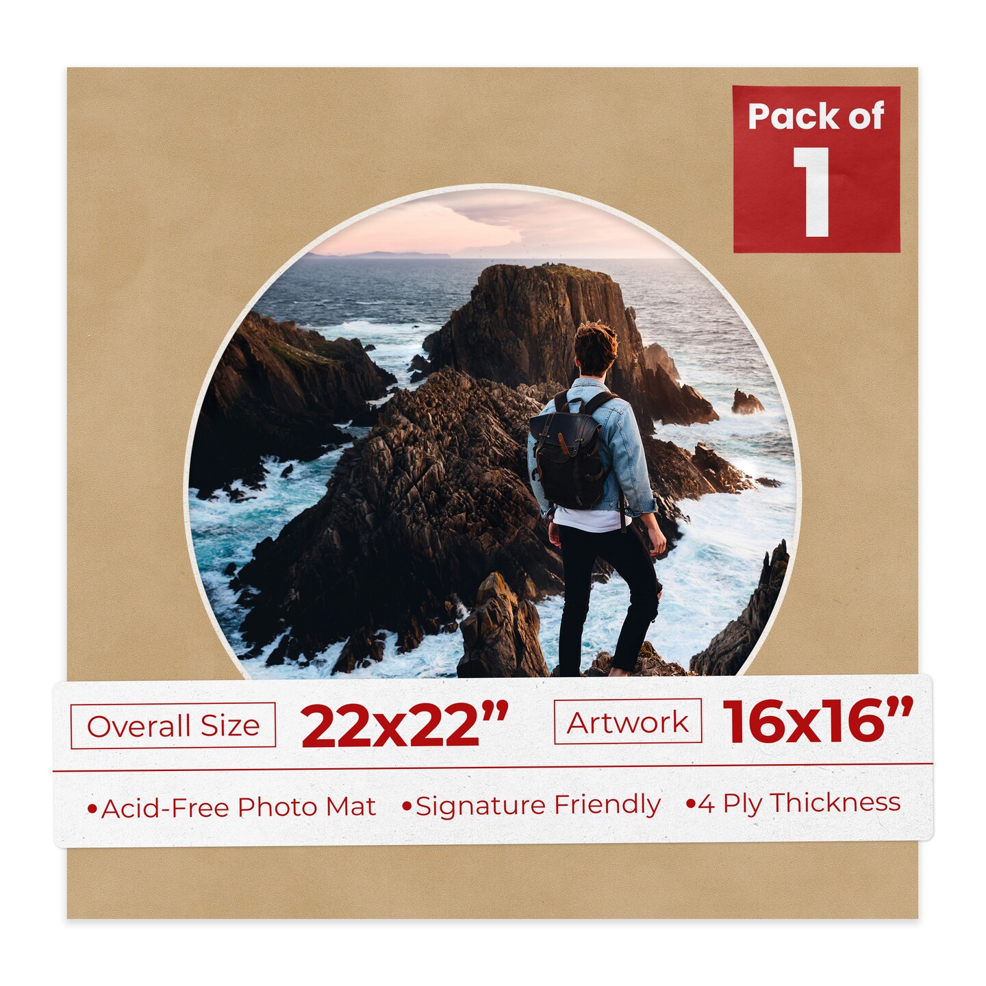 Beige Suede Mat Board for 22x22 Frames - Circle Opening for 16x16 Photos