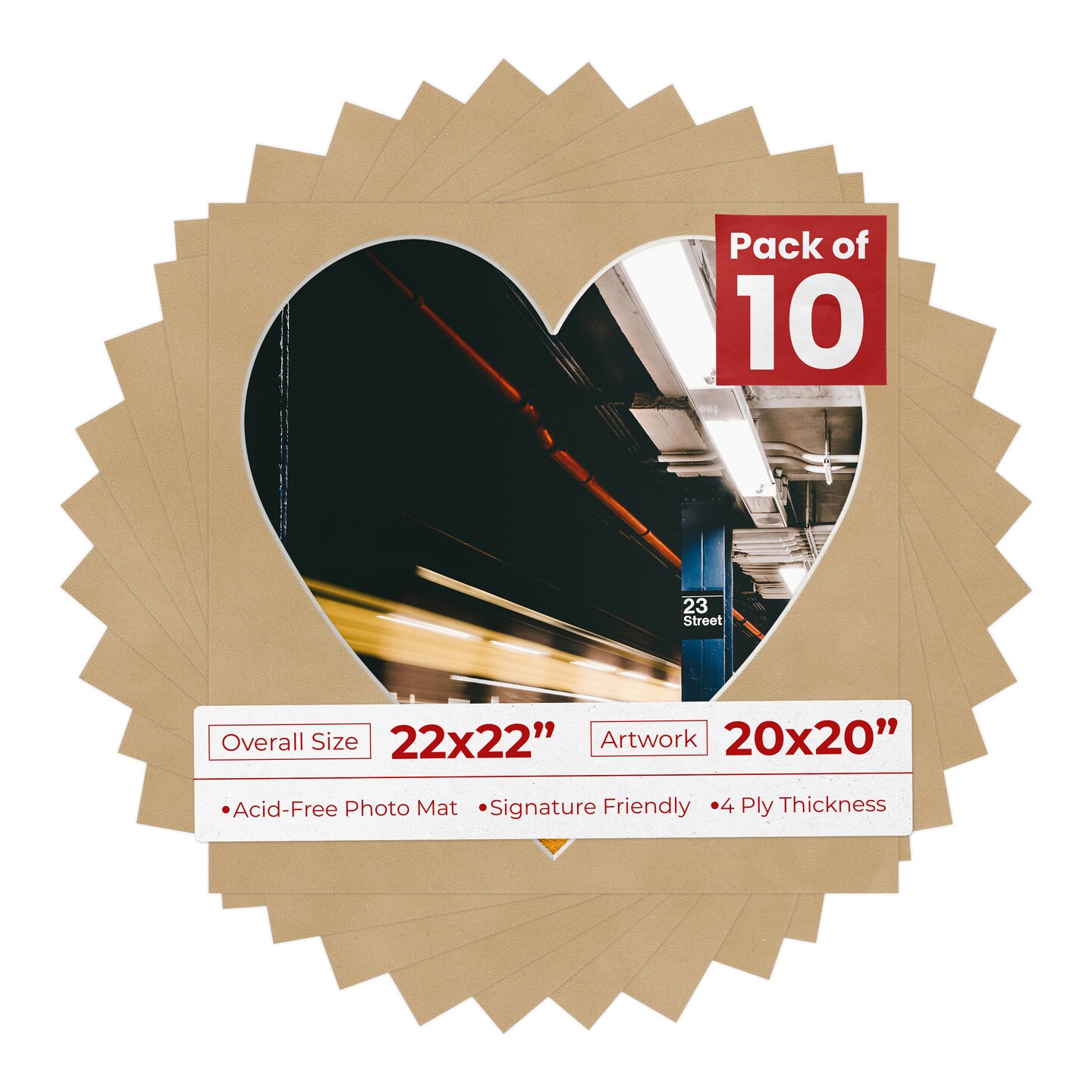 Beige Suede Mat Board for 22x22 Frames - Heart Opening for 20x20 Photos
