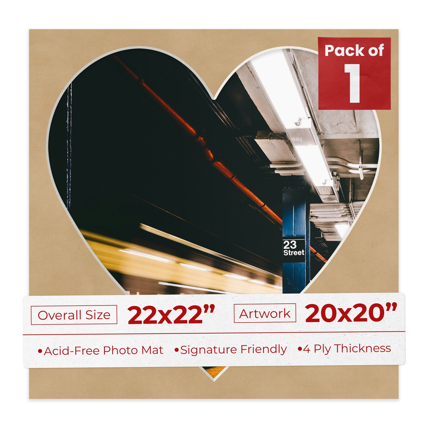 Beige Suede Mat Board for 22x22 Frames - Heart Opening for 20x20 Photos