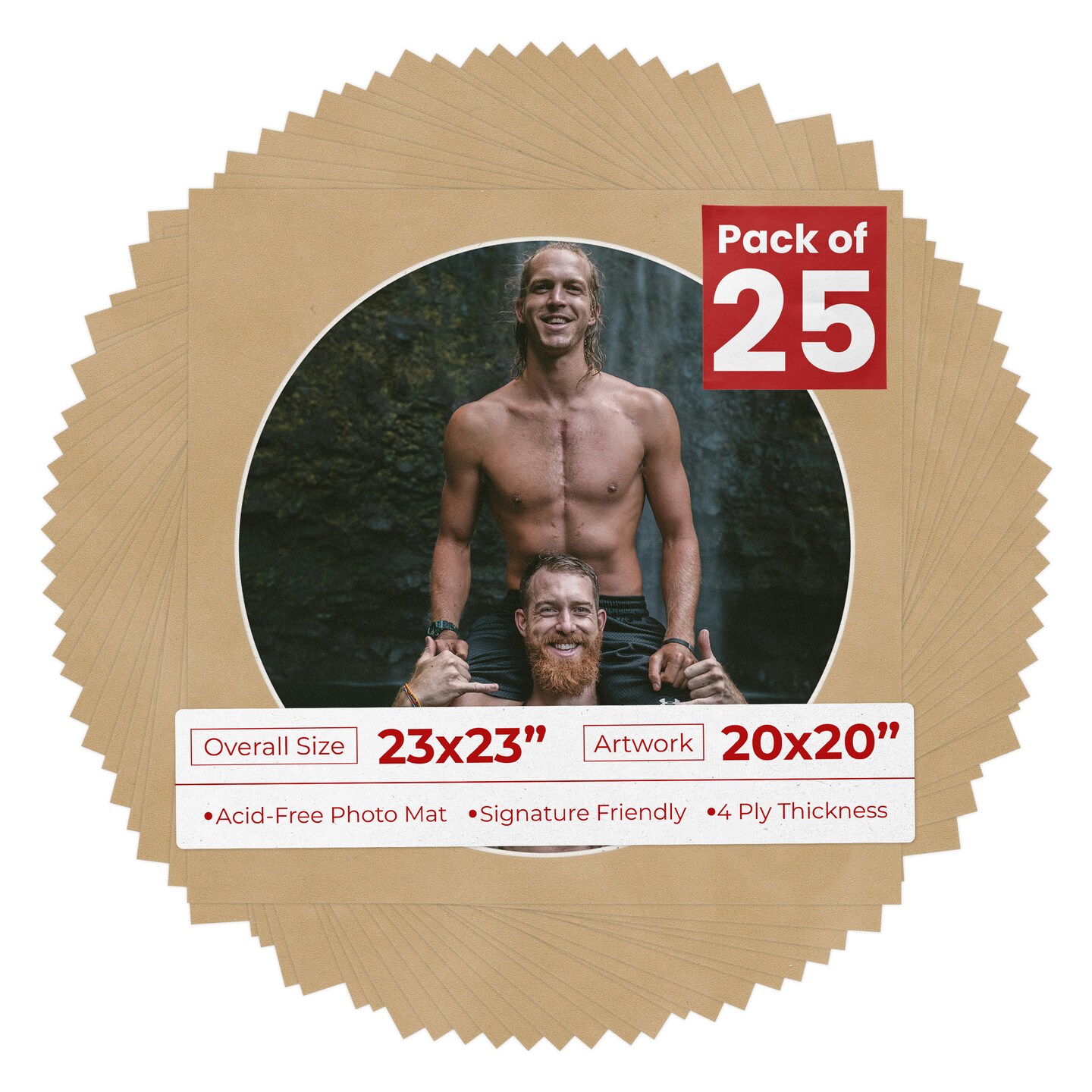 Beige Suede Mat Board for 23x23 Frames - Circle Opening for 20x20 Photos