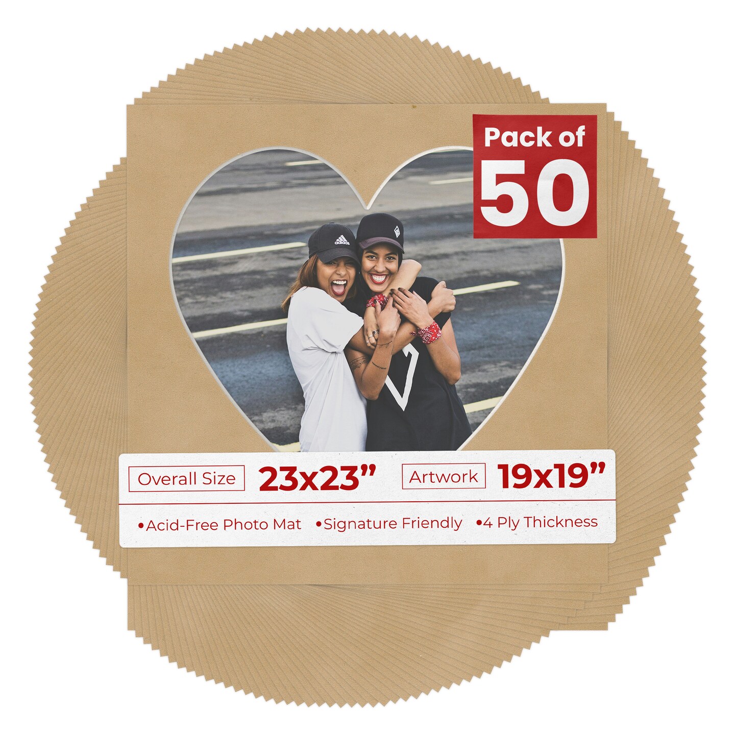Beige Suede Mat Board for 23x23 Frames - Heart Opening for 19x19 Photos