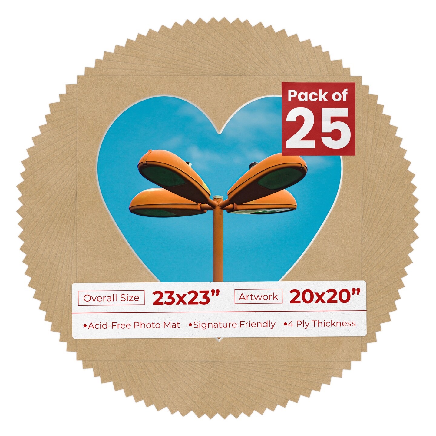 Beige Suede Mat Board for 23x23 Frames - Heart Opening for 20x20 Photos