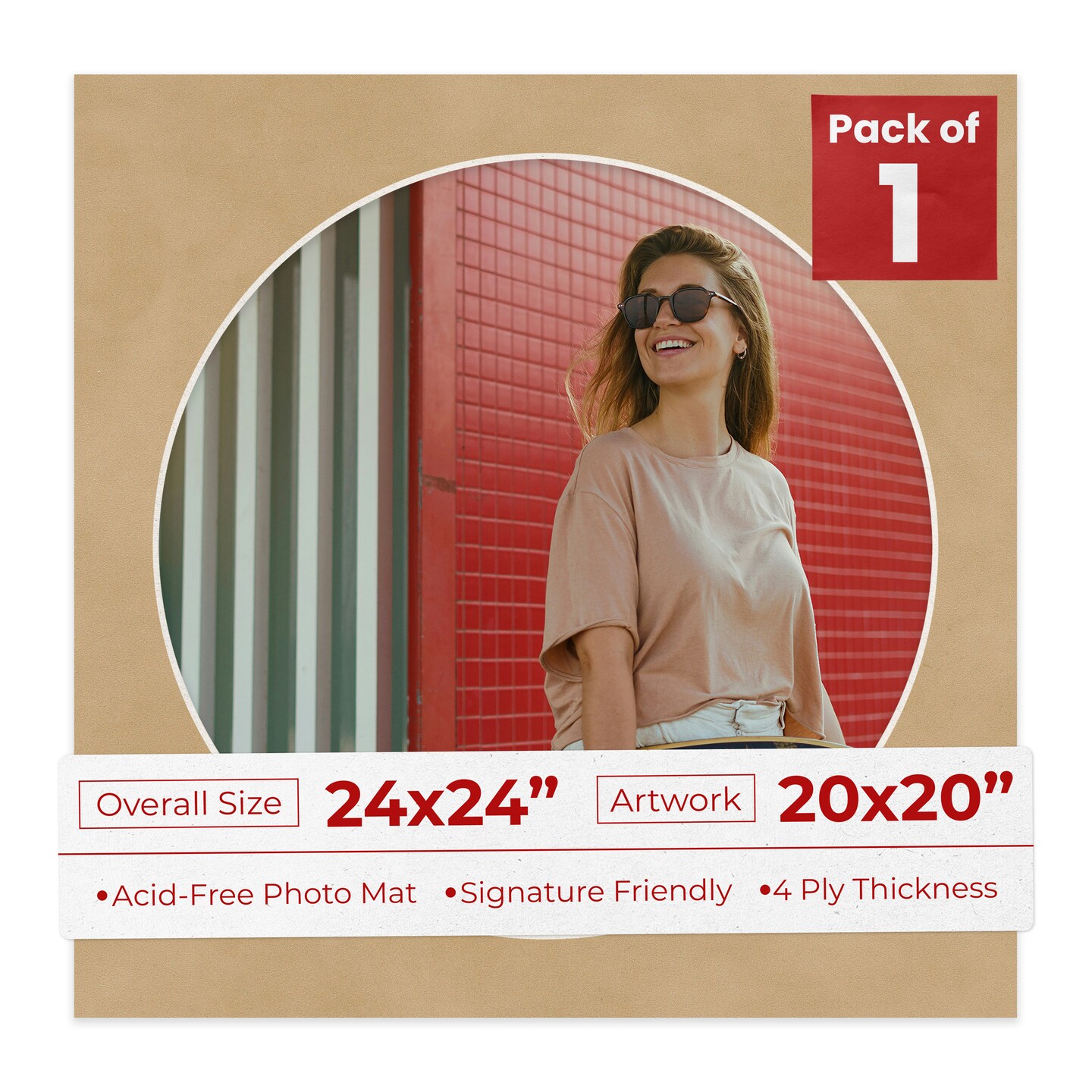 Beige Suede Mat Board for 24x24 Frames - Circle Opening for 20x20 Photos