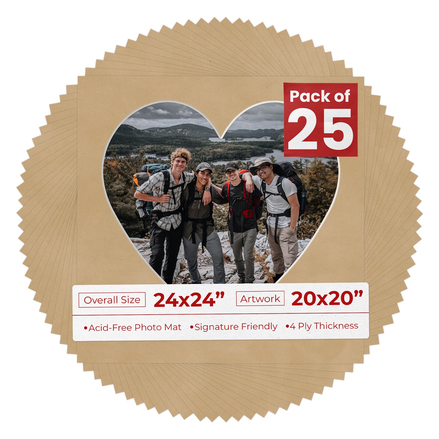 Beige Suede Mat Board for 24x24 Frames - Heart Opening for 20x20 Photos