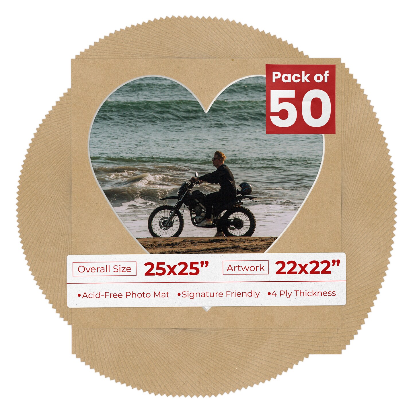 Beige Suede Mat Board for 25x25 Frames - Heart Opening for 22x22 Photos