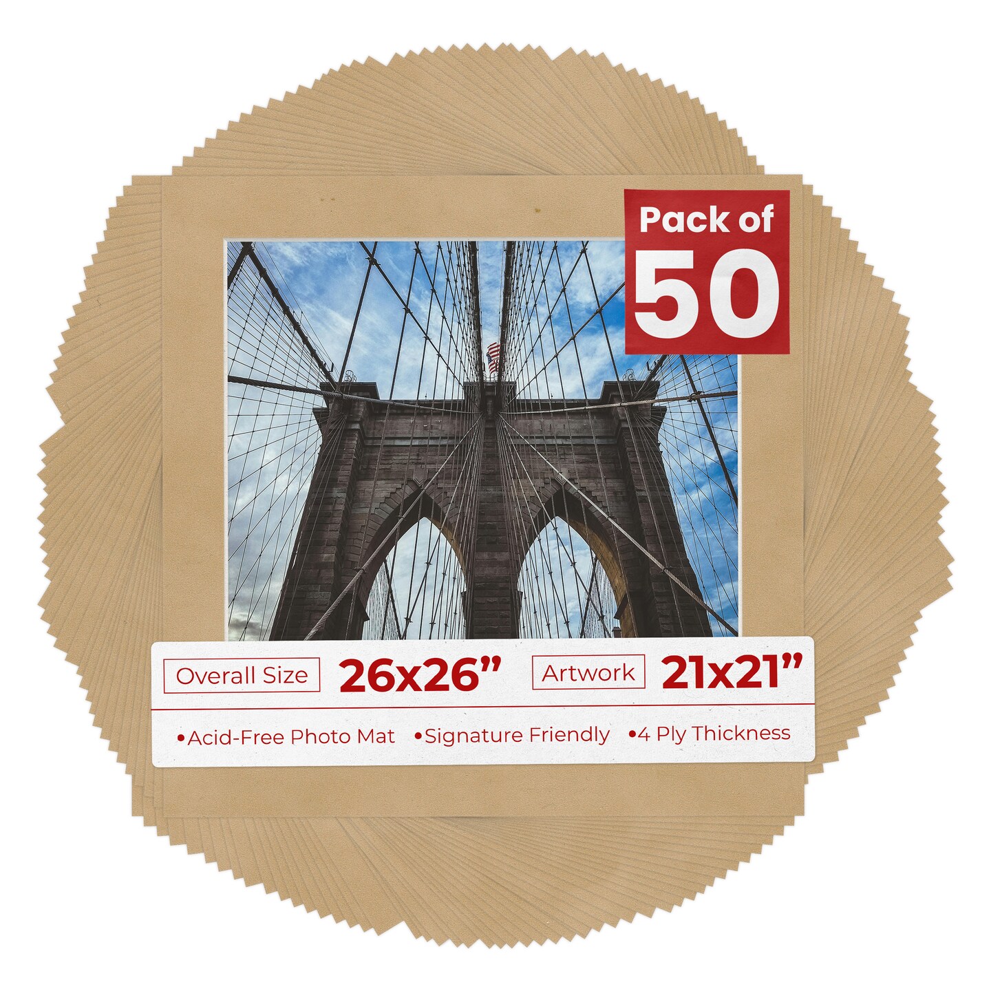 Beige Suede Mat Board for 26x26 Frames - Fits 21x21 Photos