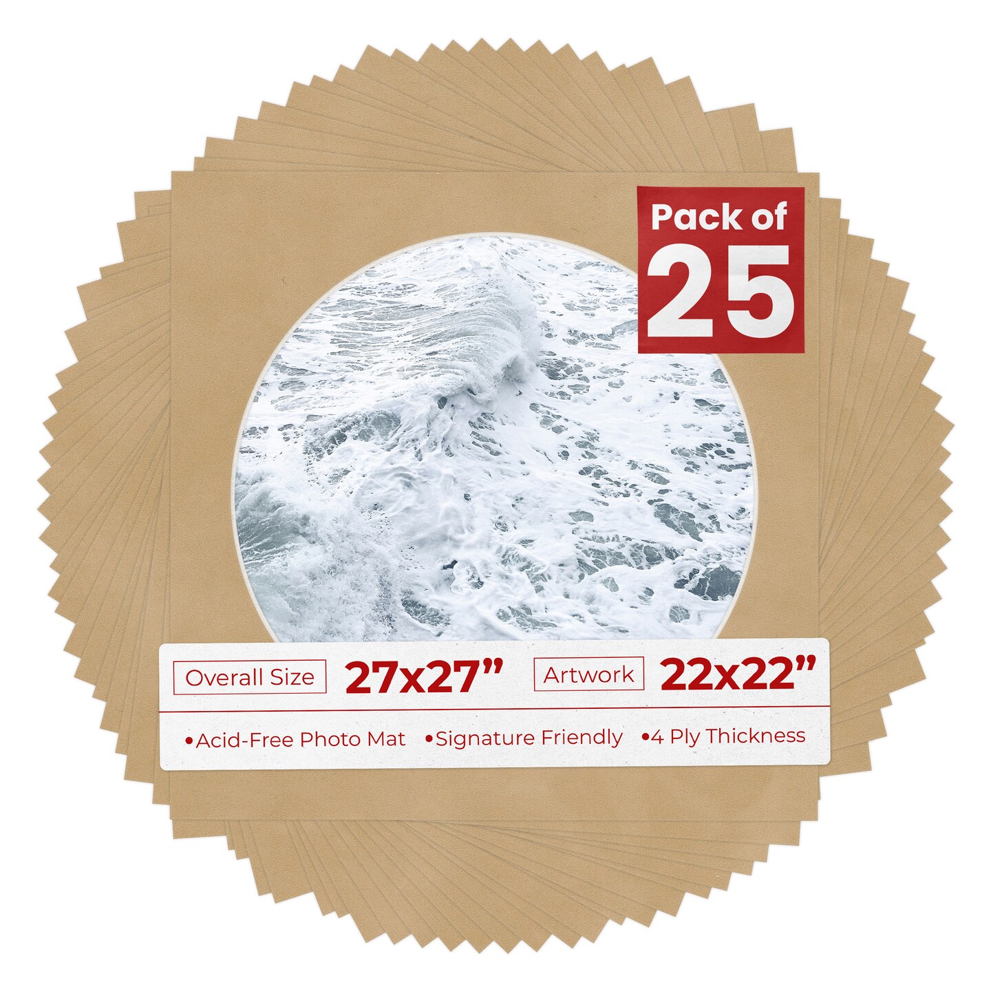 Beige Suede Mat Board for 27x27 Frames - Circle Opening for 22x22 Photos