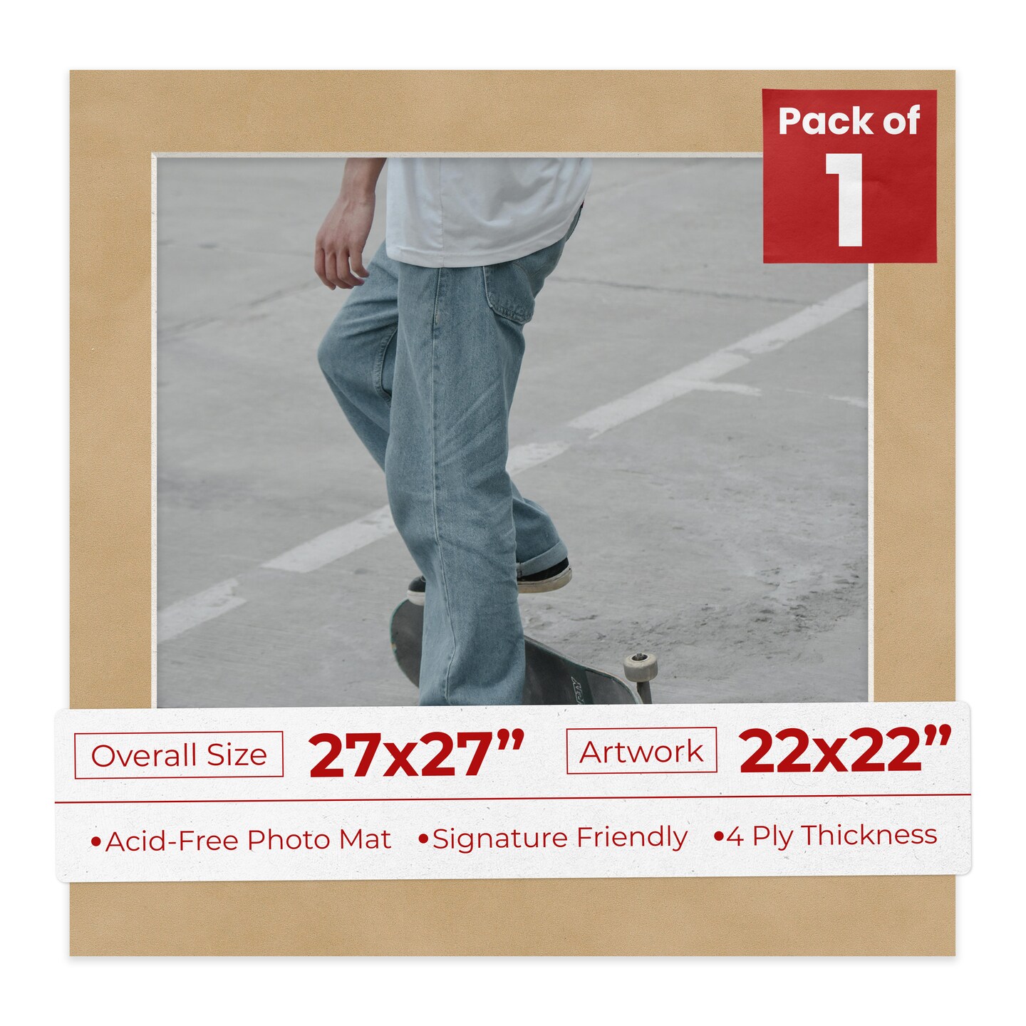 Beige Suede Mat Board for 27x27 Frames - Fits 22x22 Photos