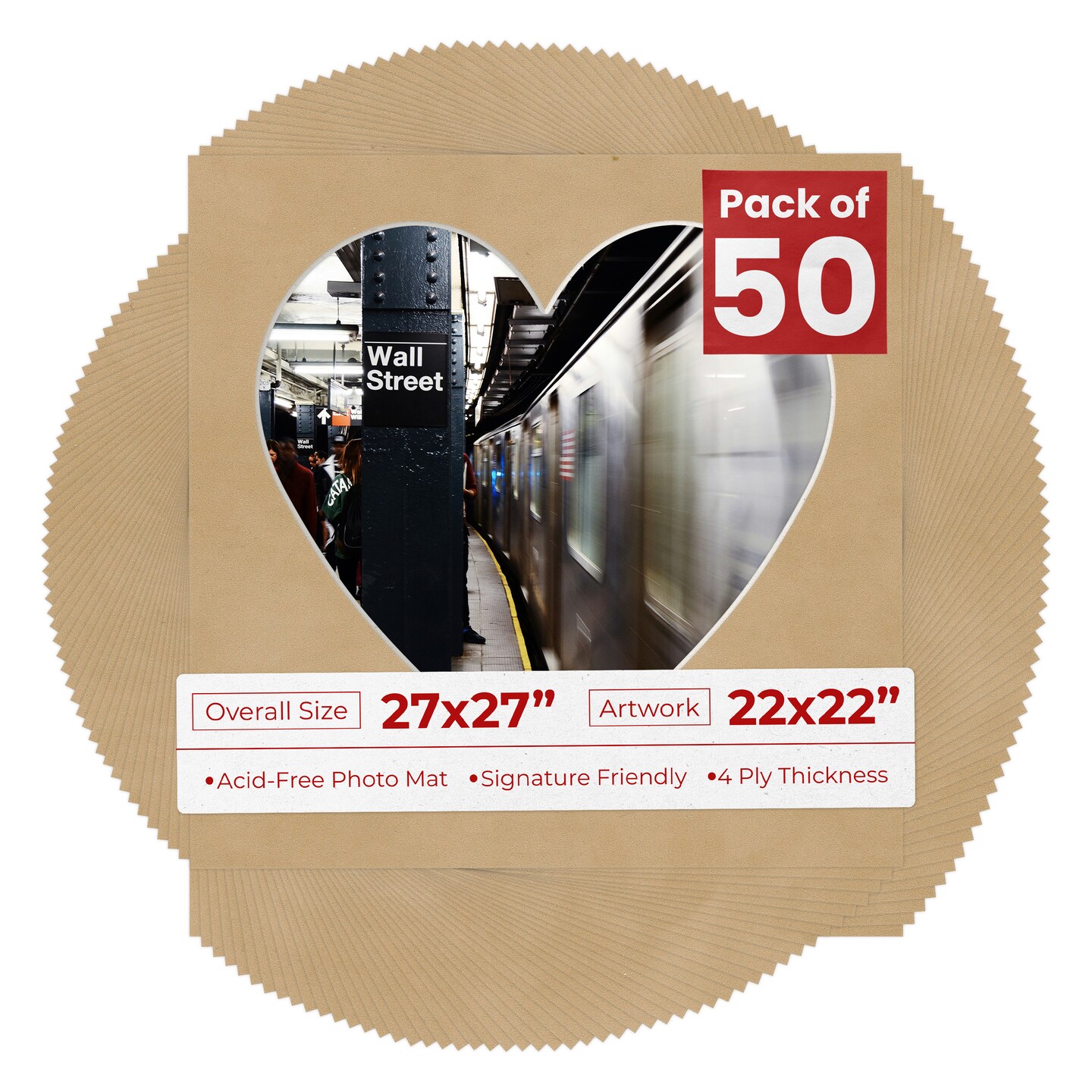 Beige Suede Mat Board for 27x27 Frames - Heart Opening for 22x22 Photos