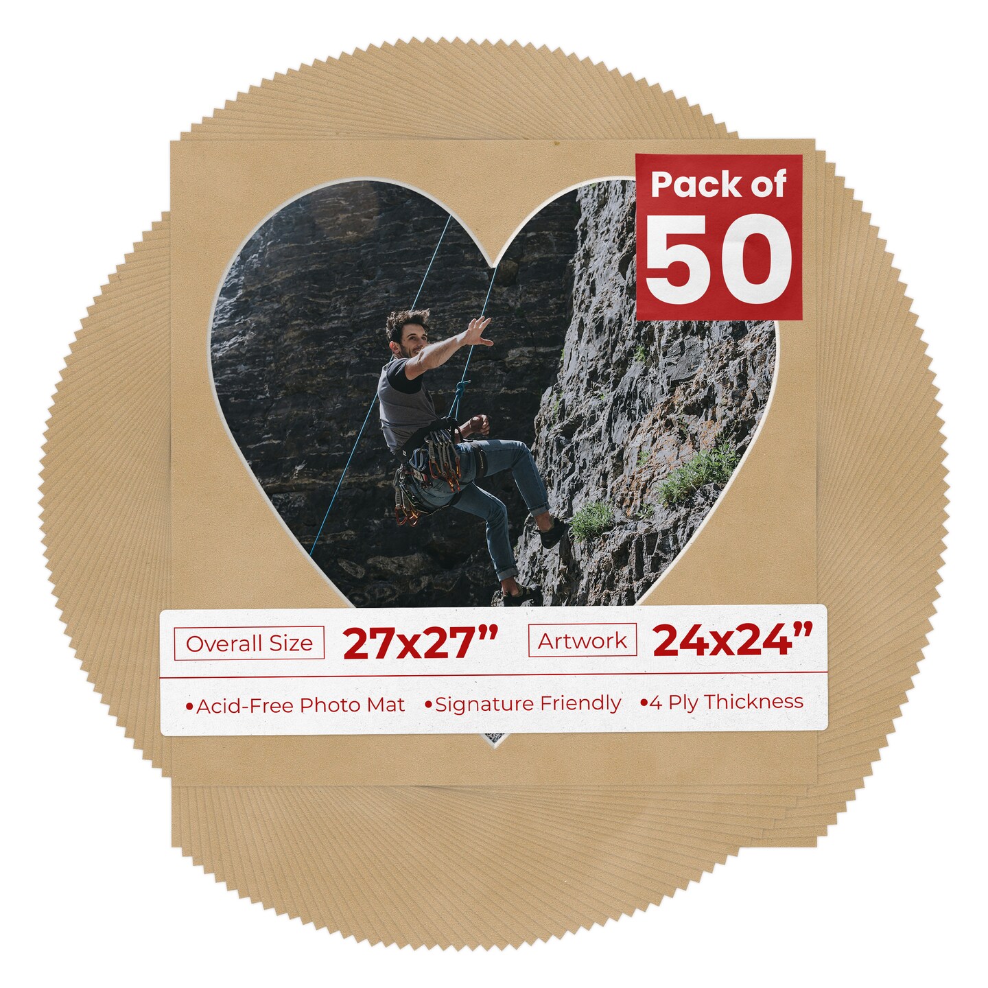 Beige Suede Mat Board for 27x27 Frames - Heart Opening for 24x24 Photos