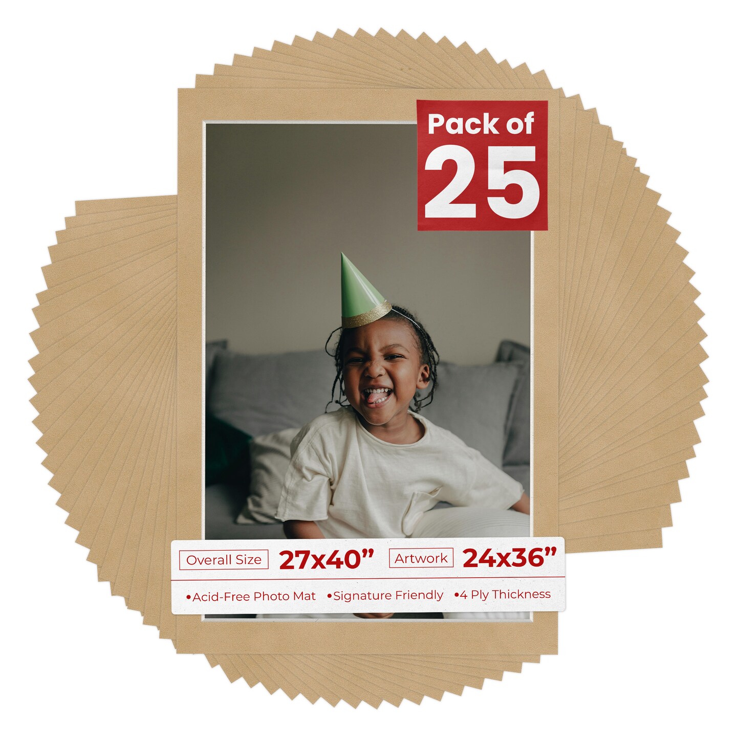 Beige Suede Mat Board for 27x40 Frames - Fits 24x36 Photos