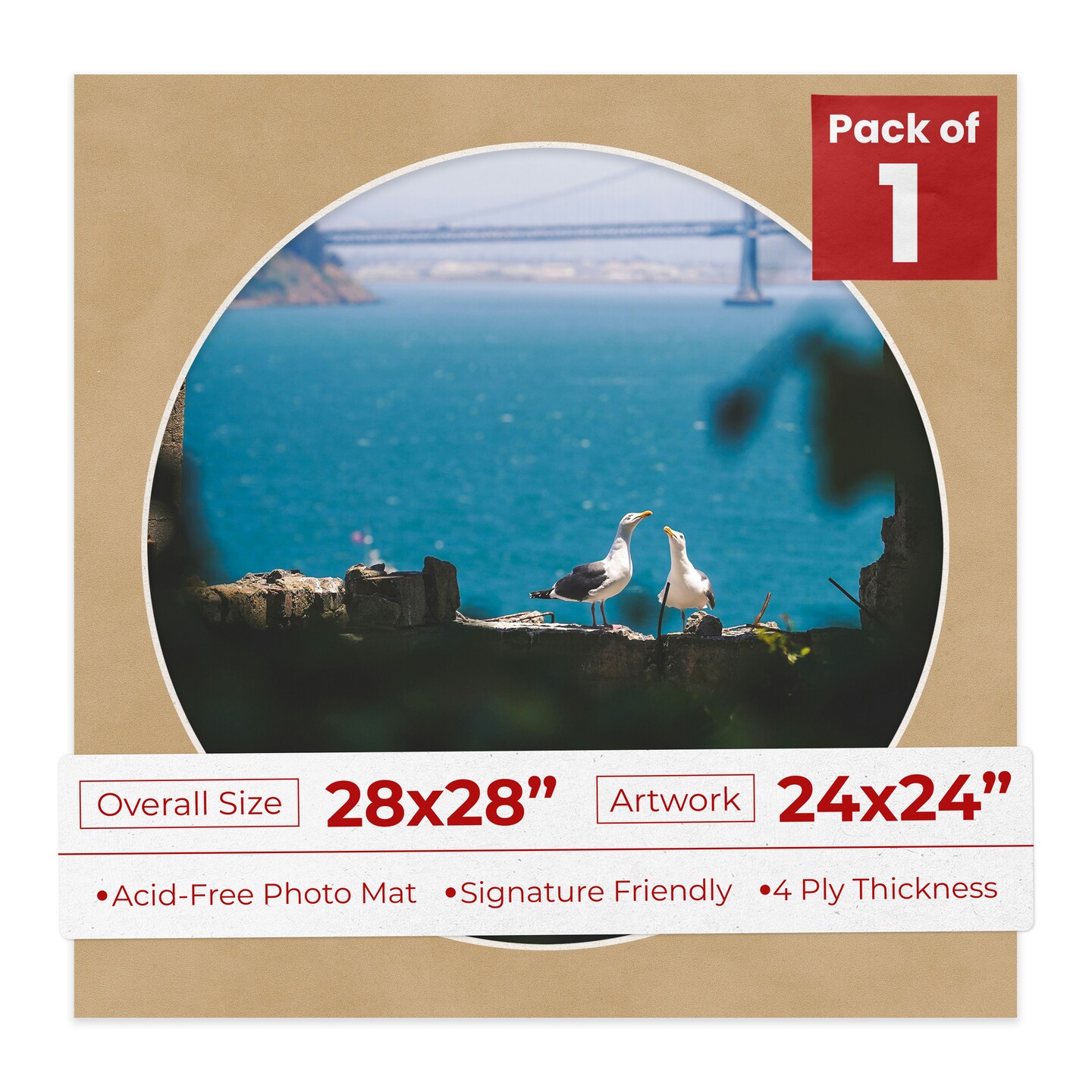Beige Suede Mat Board for 28x28 Frames - Circle Opening for 24x24 Photos