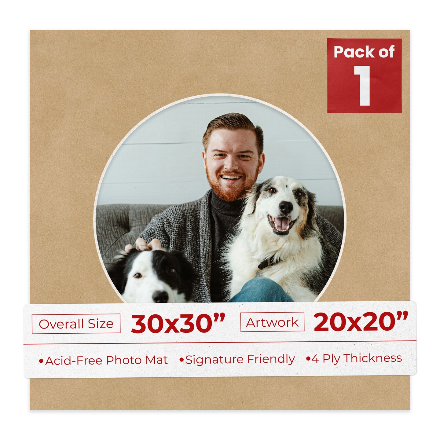 Beige Suede Mat Board for 30x30 Frames - Circle Opening for 20x20 Photos