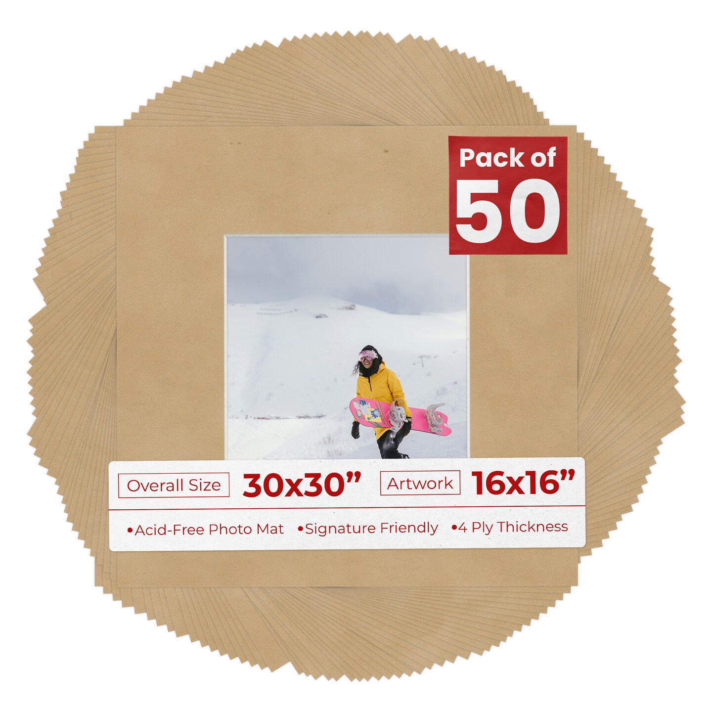 Beige Suede Mat Board for 30x30 Frames - Fits 16x16 Photos