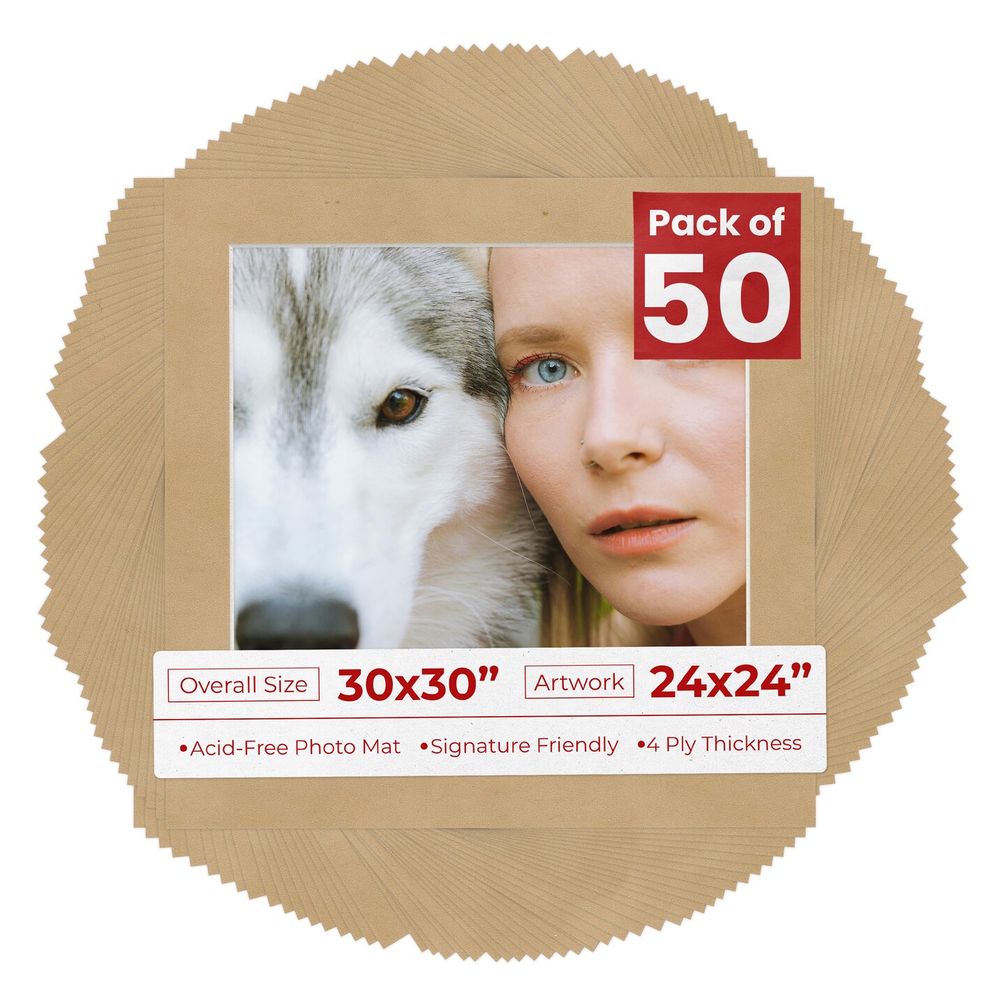 Beige Suede Mat Board for 30x30 Frames - Fits 24x24 Photos