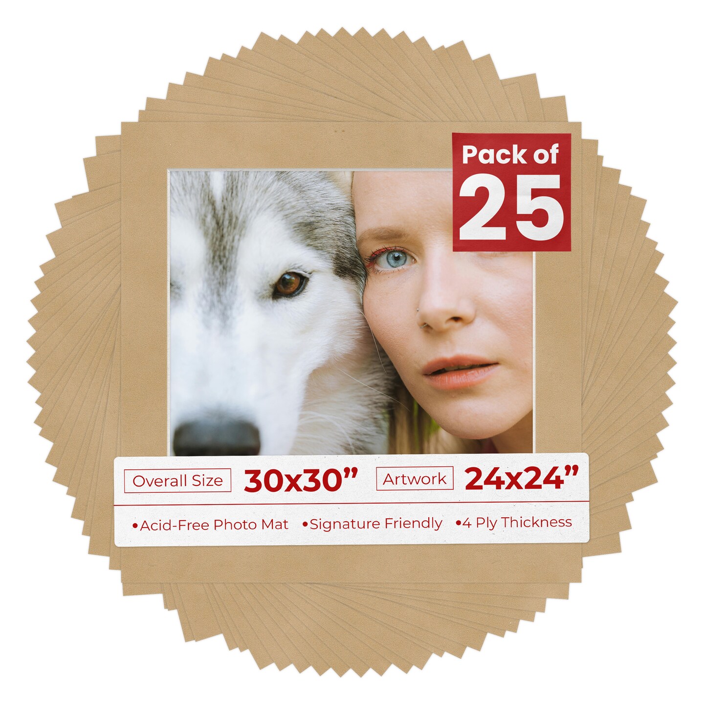Beige Suede Mat Board for 30x30 Frames - Fits 24x24 Photos