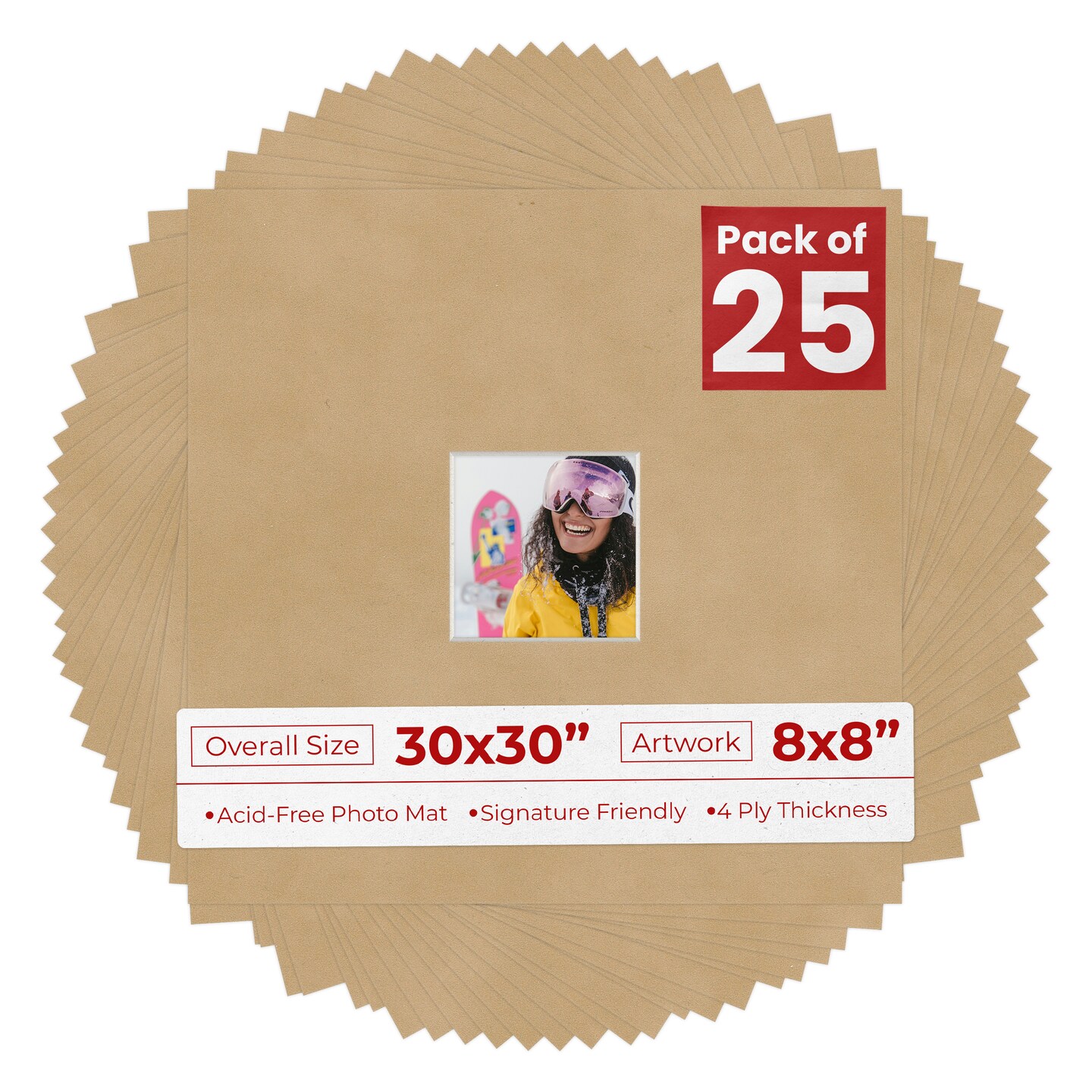 Beige Suede Mat Board for 30x30 Frames - Fits 8x8 Photos