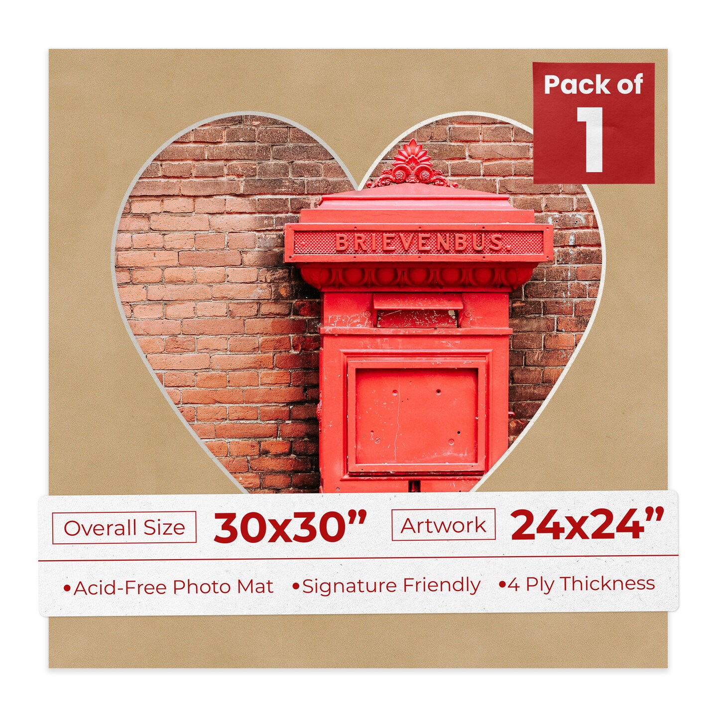 Beige Suede Mat Board for 30x30 Frames - Heart Opening for 24x24 Photos