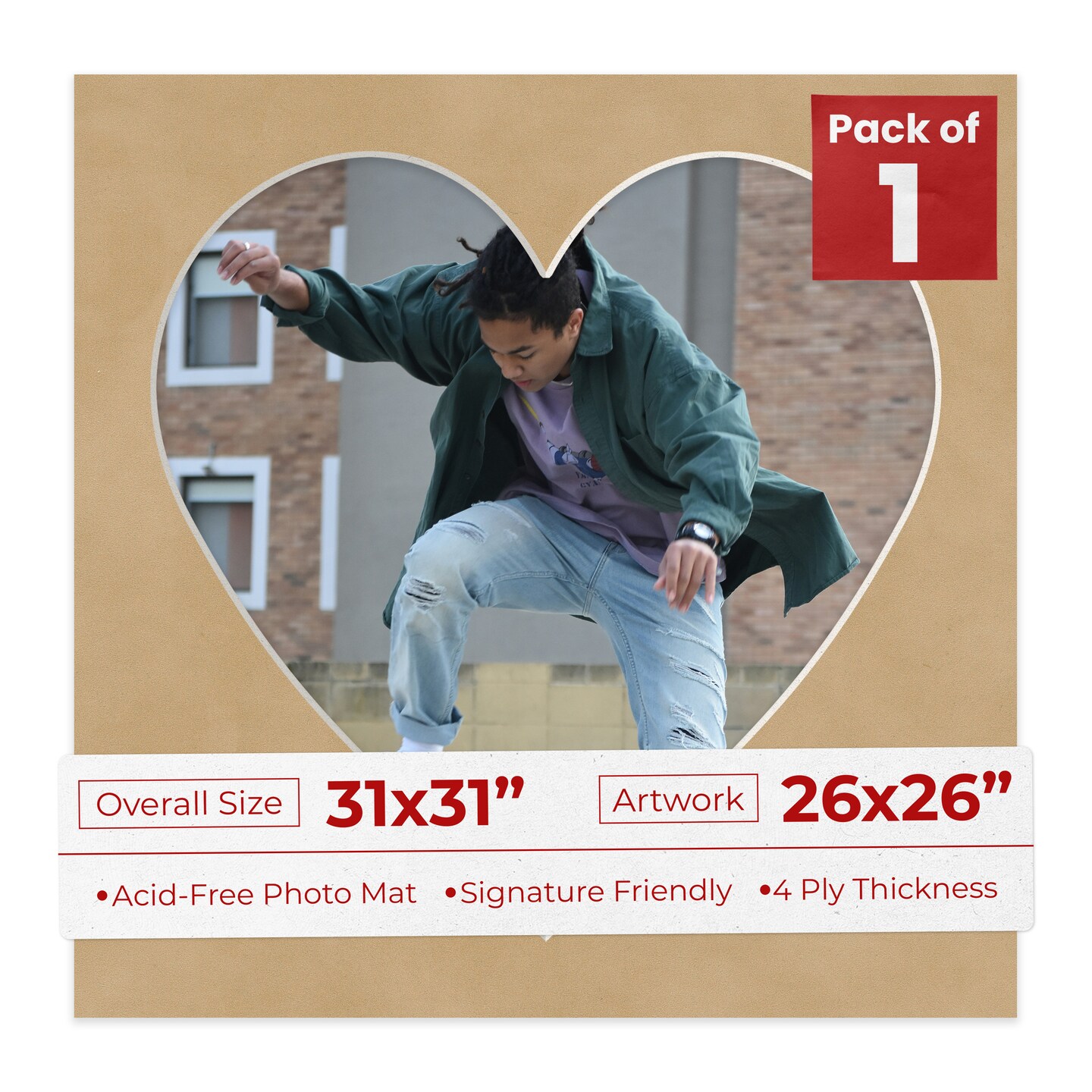 Beige Suede Mat Board for 31x31 Frames - Heart Opening for 26x26 Photos