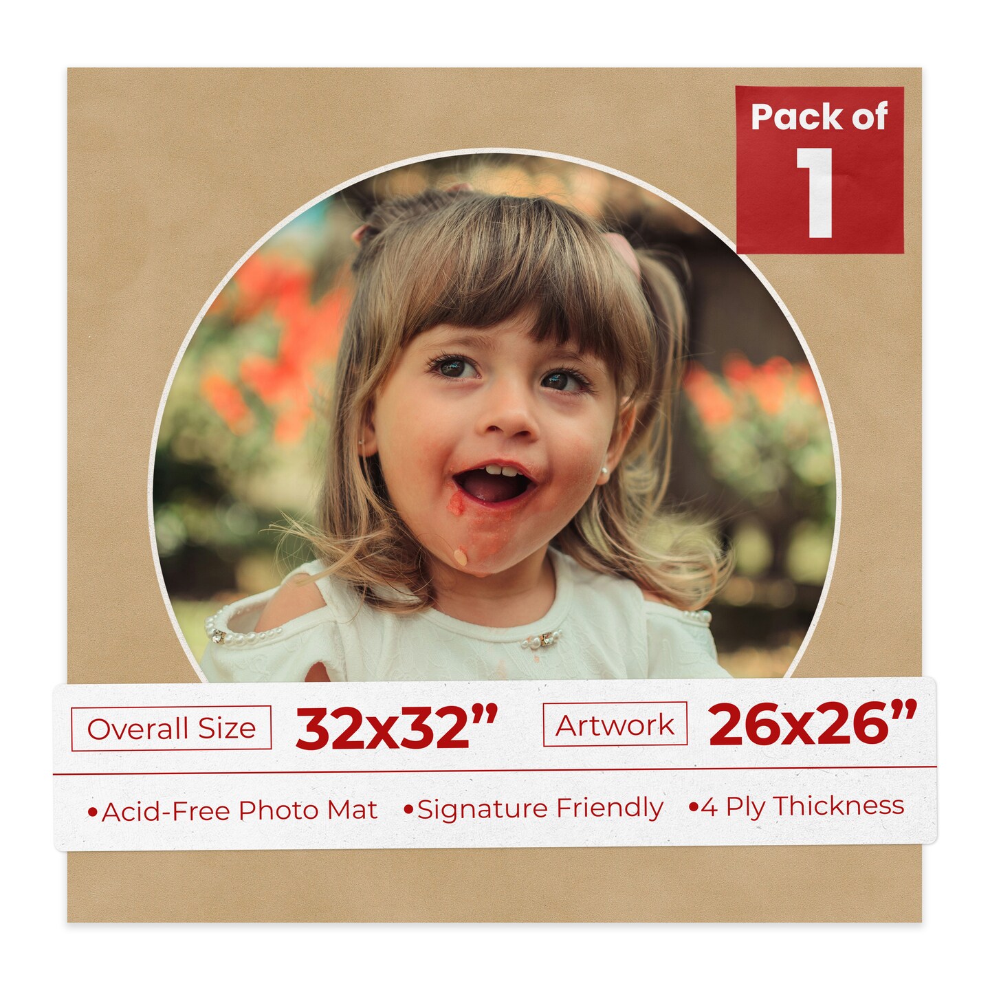 Beige Suede Mat Board for 32x32 Frames - Circle Opening for 26x26 Photos