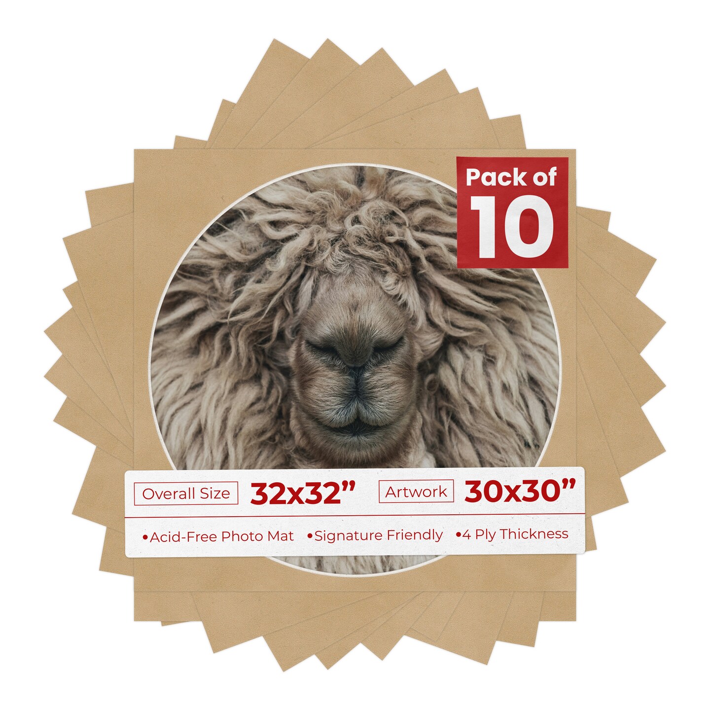 Beige Suede Mat Board for 32x32 Frames - Circle Opening for 30x30 Photos