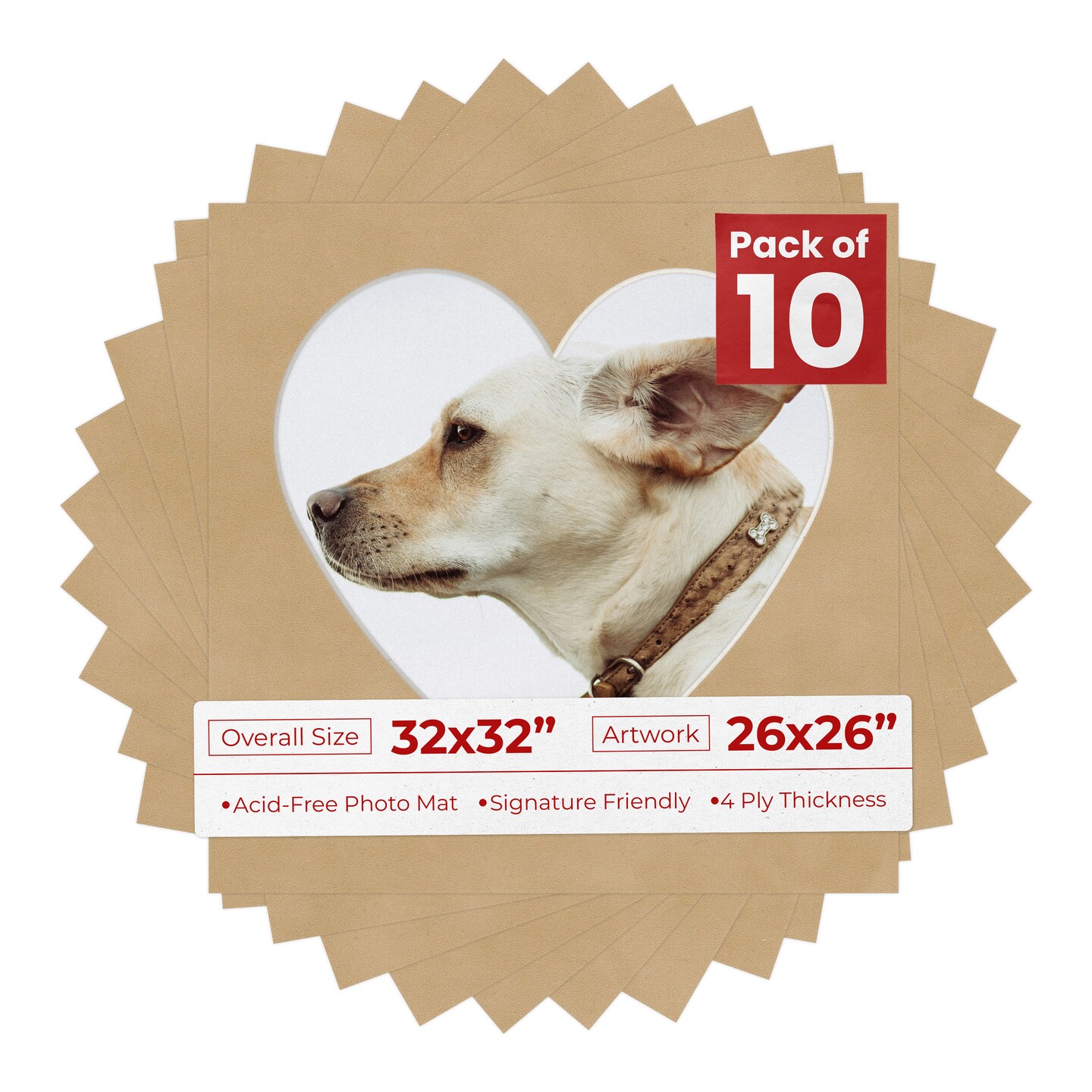 Beige Suede Mat Board for 32x32 Frames - Heart Opening for 26x26 Photos
