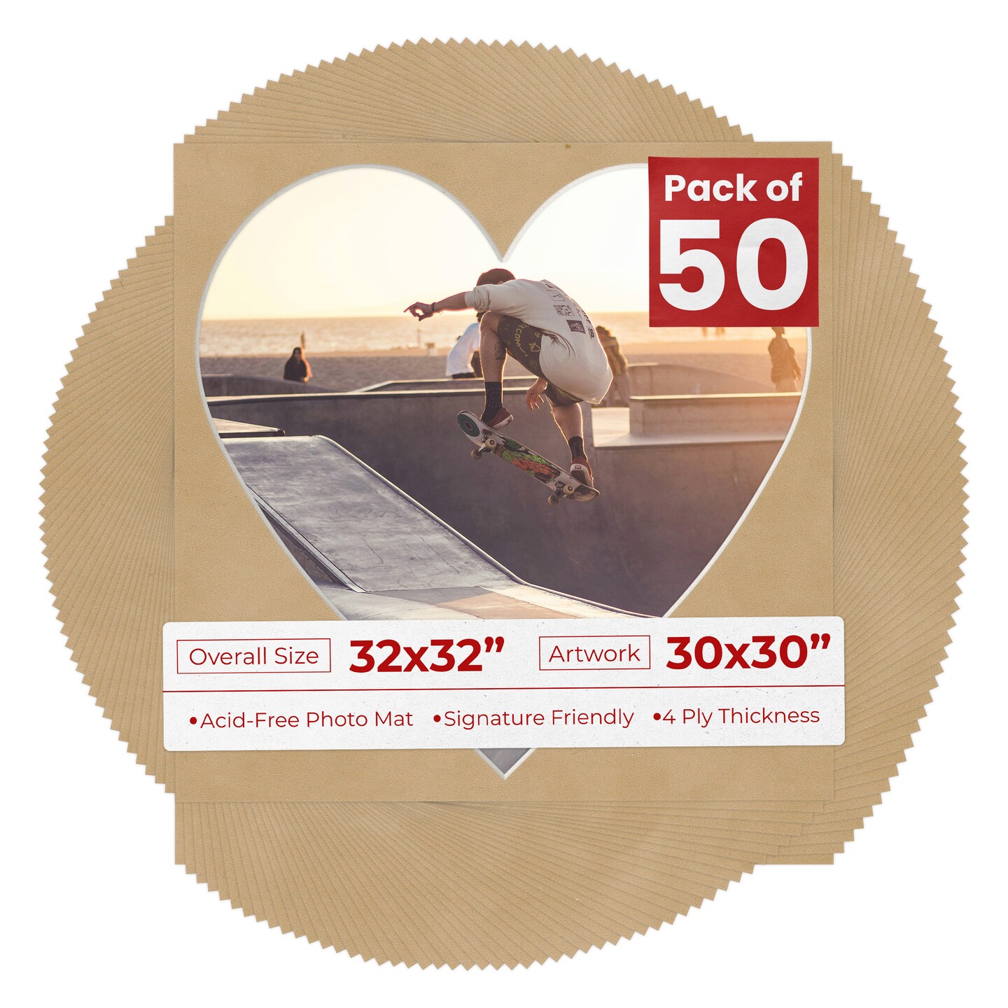Beige Suede Mat Board for 32x32 Frames - Heart Opening for 30x30 Photos