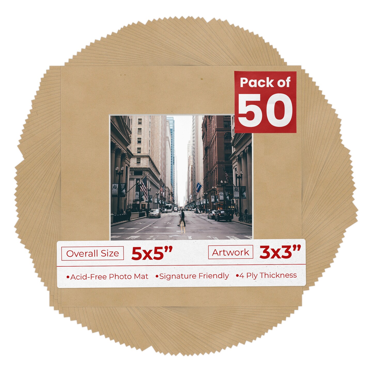 Beige Suede Mat Board for 5x5 Inch Frames - Fits 3x3 Photos