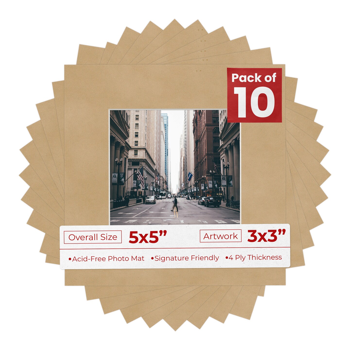 Beige Suede Mat Board for 5x5 Inch Frames - Fits 3x3 Photos