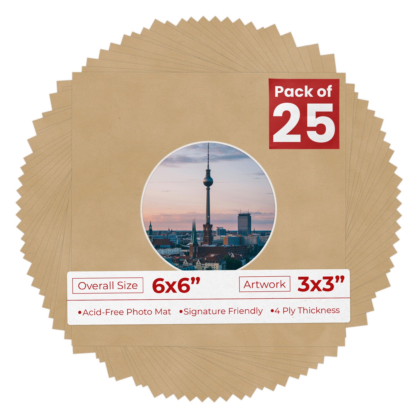 Beige Suede Mat Board for 6x6 Frames - Circle Opening for 3x3 Photos