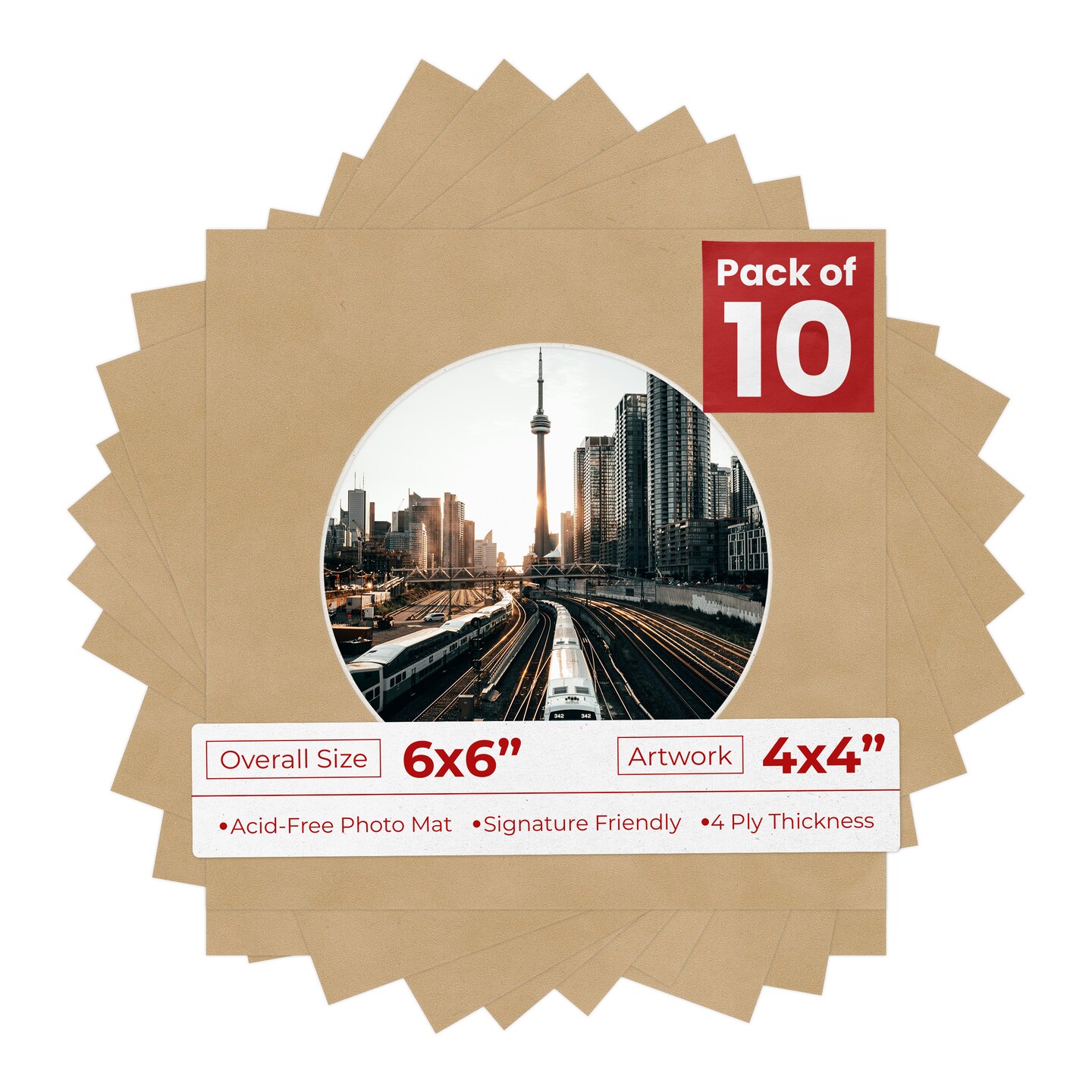 Beige Suede Mat Board for 6x6 Frames - Circle Opening for 4x4 Photos