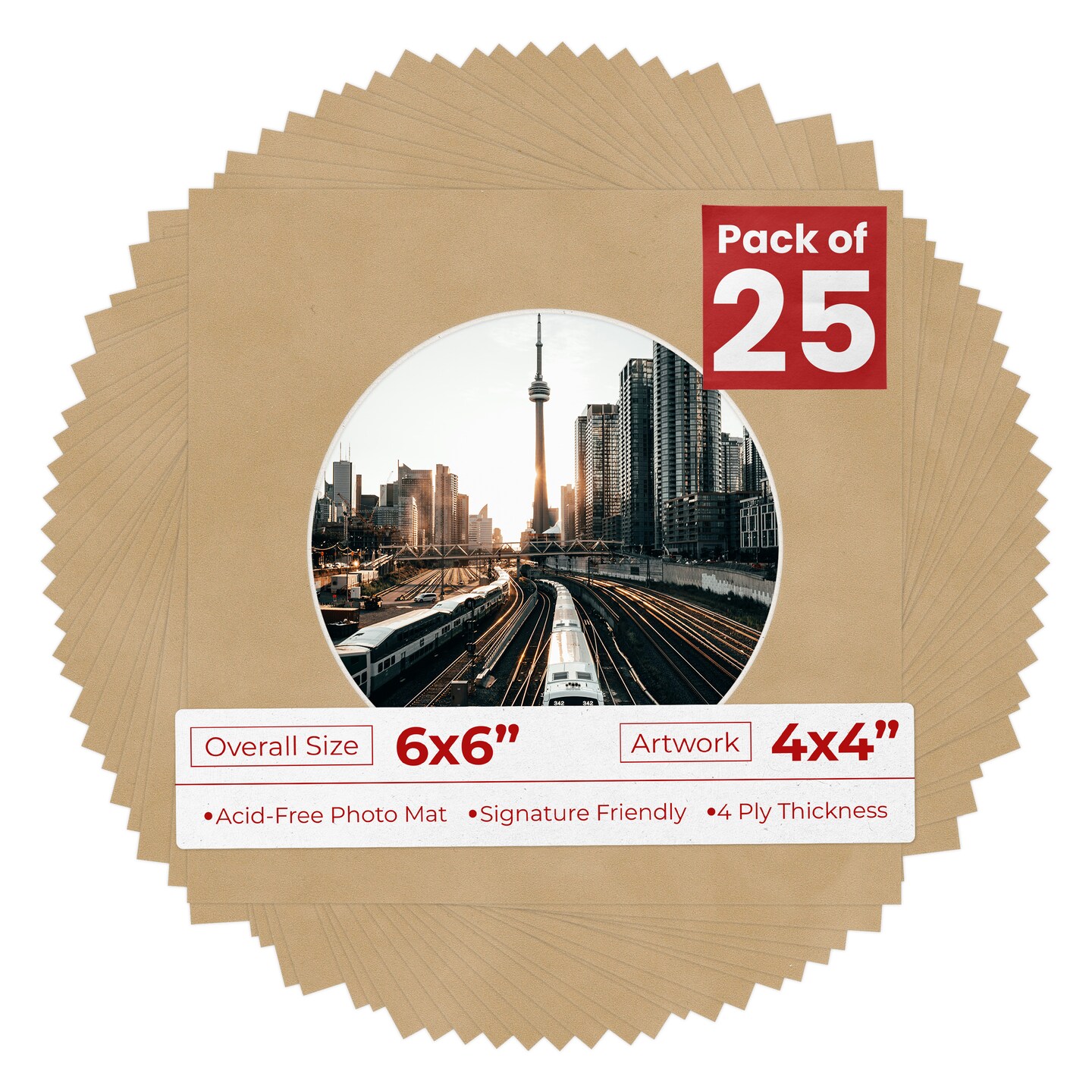 Beige Suede Mat Board for 6x6 Frames - Circle Opening for 4x4 Photos