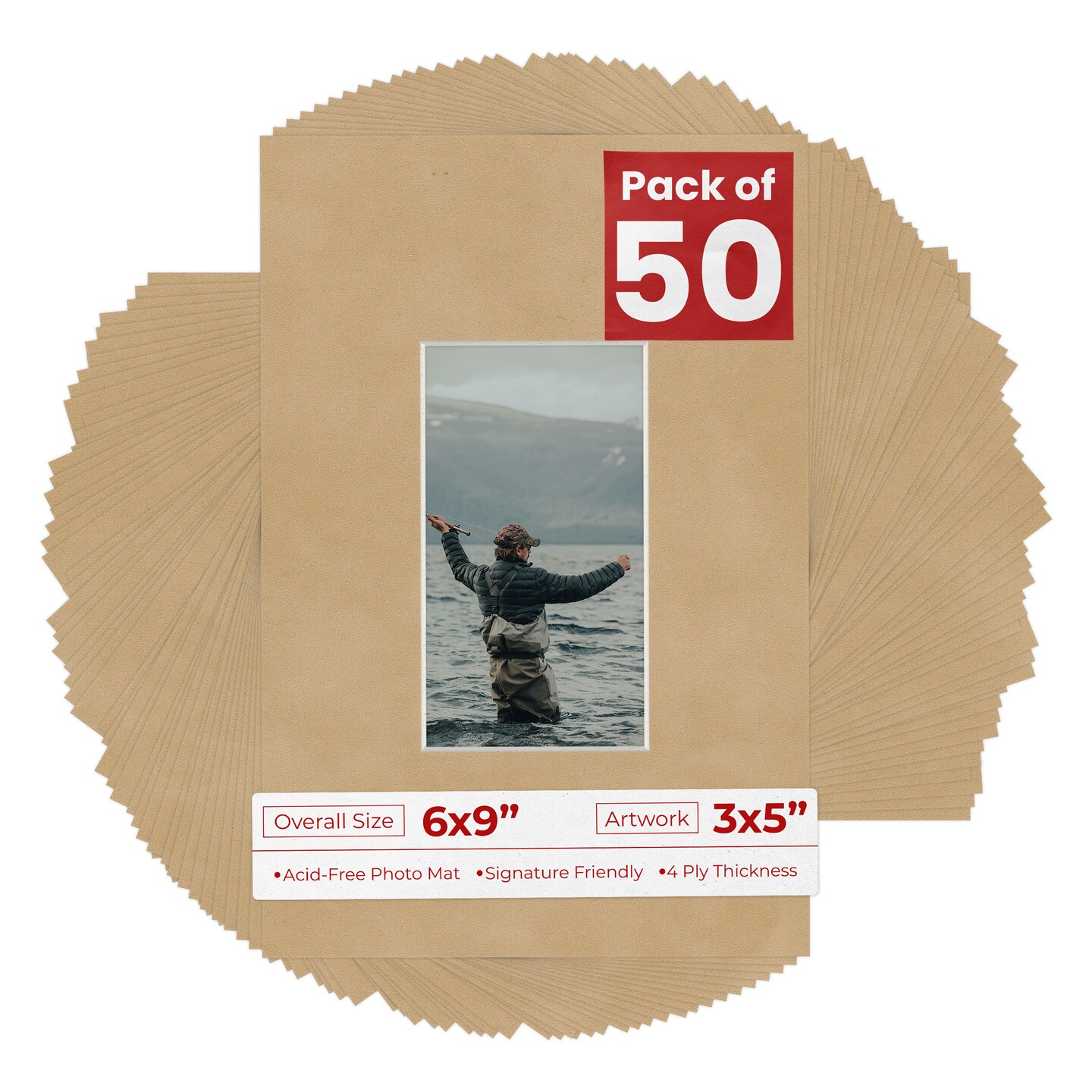 Beige Suede Mat Board for 6x9 Frames - Fits 3x5 Photos