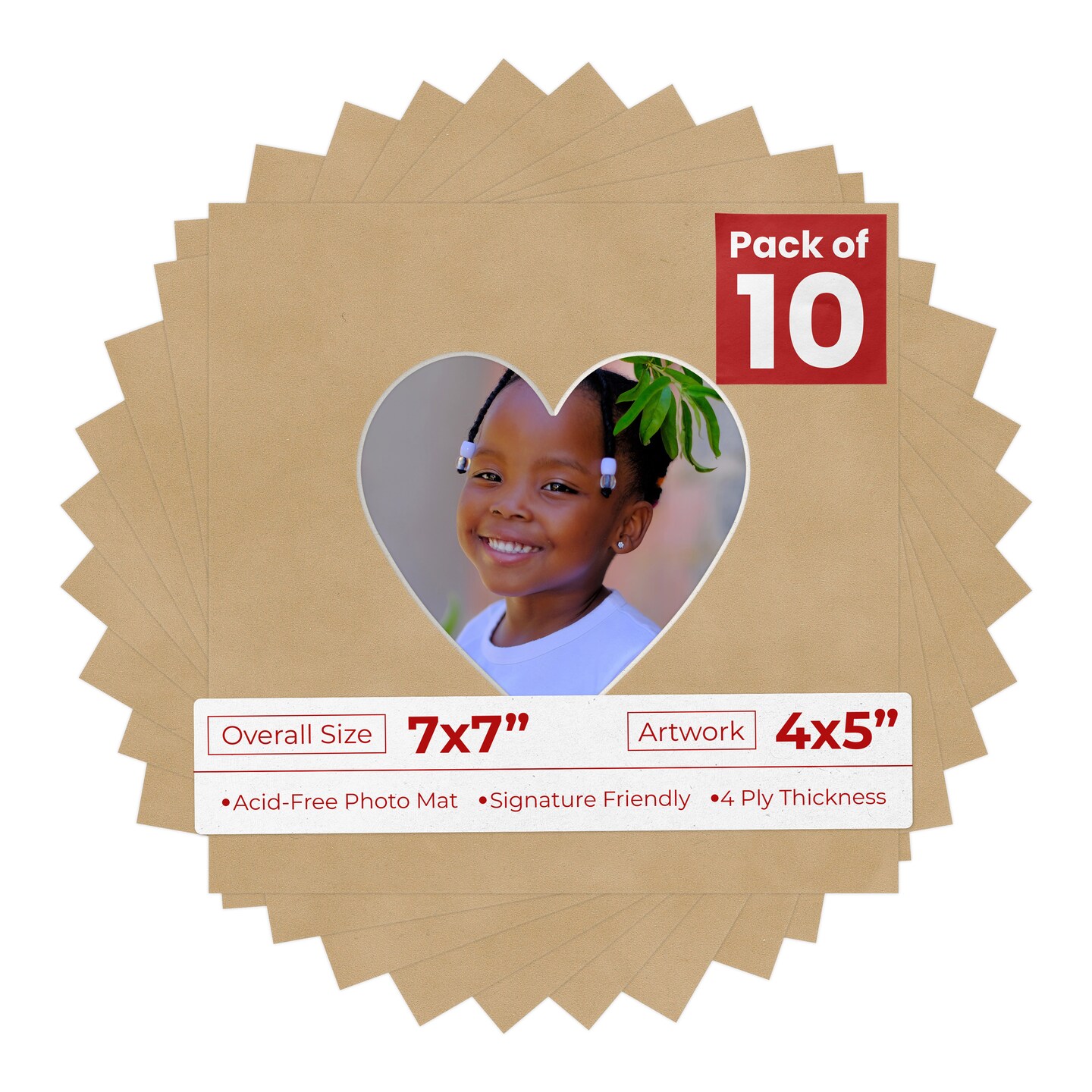 Beige Suede Mat Board for 7x7 Frames - Heart Opening for 4x5 Photos