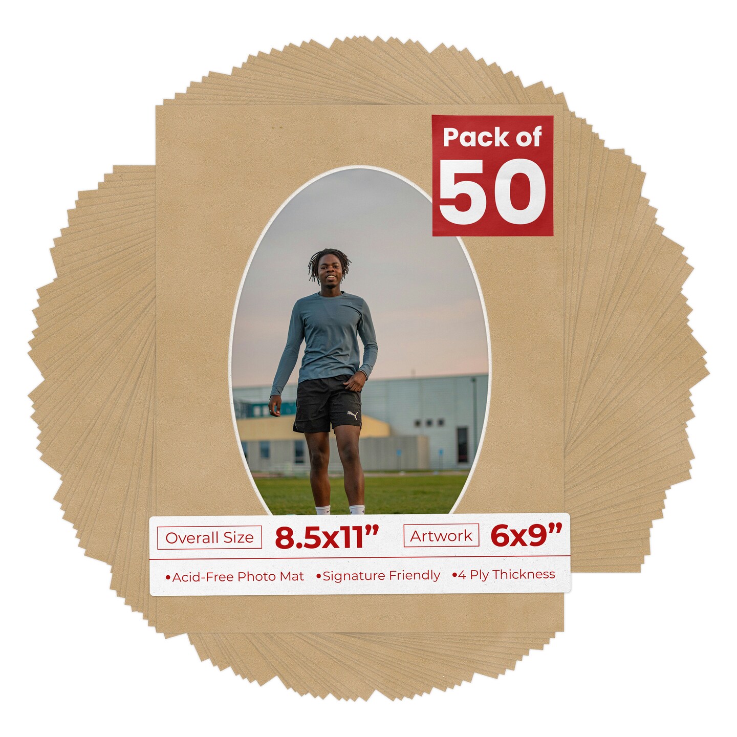Beige Suede Mat Board for 8.5x11 Frames - Oval Opening for 6x9 Photos