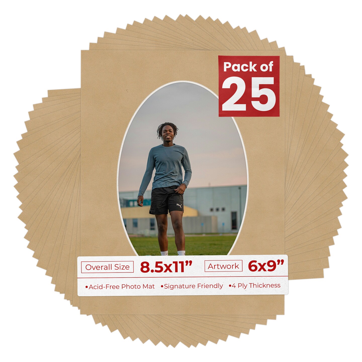 Beige Suede Mat Board for 8.5x11 Frames - Oval Opening for 6x9 Photos