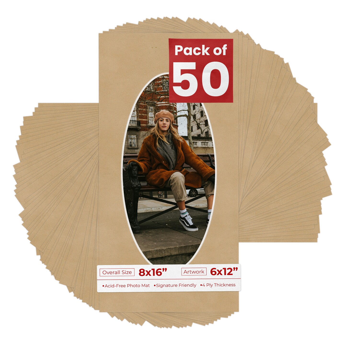 Beige Suede Mat Board for 8x16 Frames - Oval Opening for 6x12 Photos