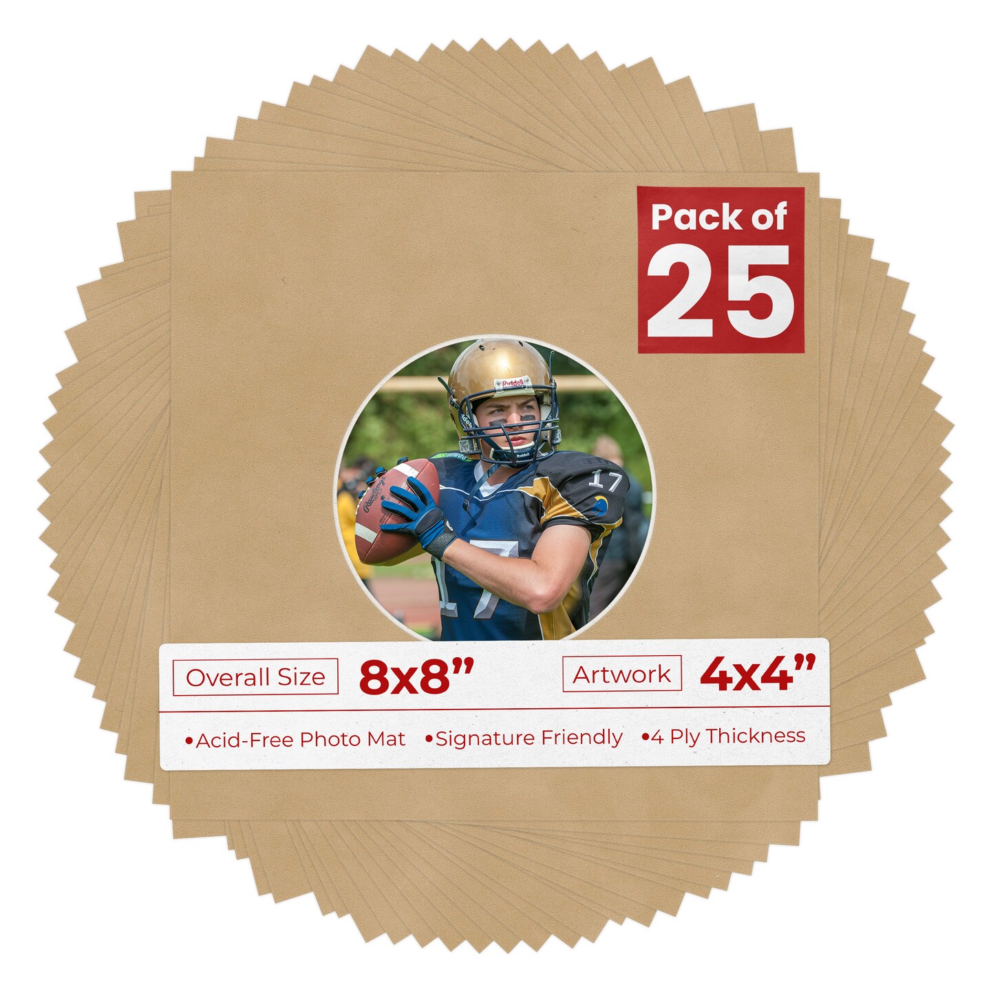 Beige Suede Mat Board for 8x8 Frames - Circle Opening for 4x4 Photos