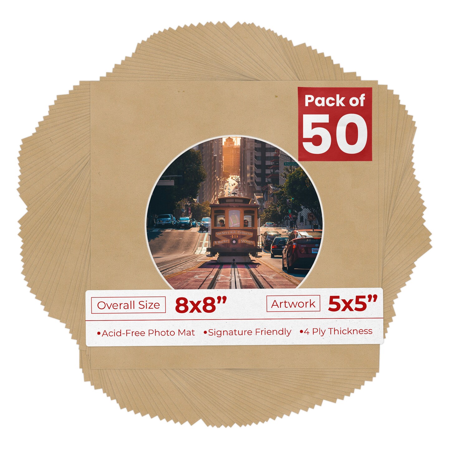 Beige Suede Mat Board for 8x8 Frames - Circle Opening for 5x5 Photos
