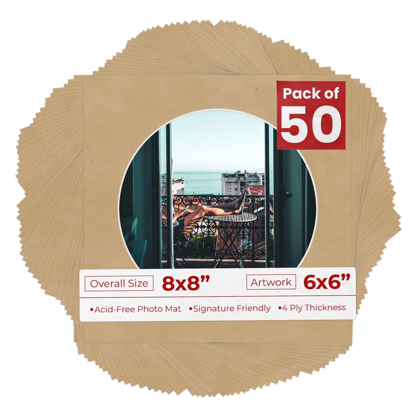Beige Suede Mat Board for 8x8 Frames - Circle Opening for 6x6 Photos