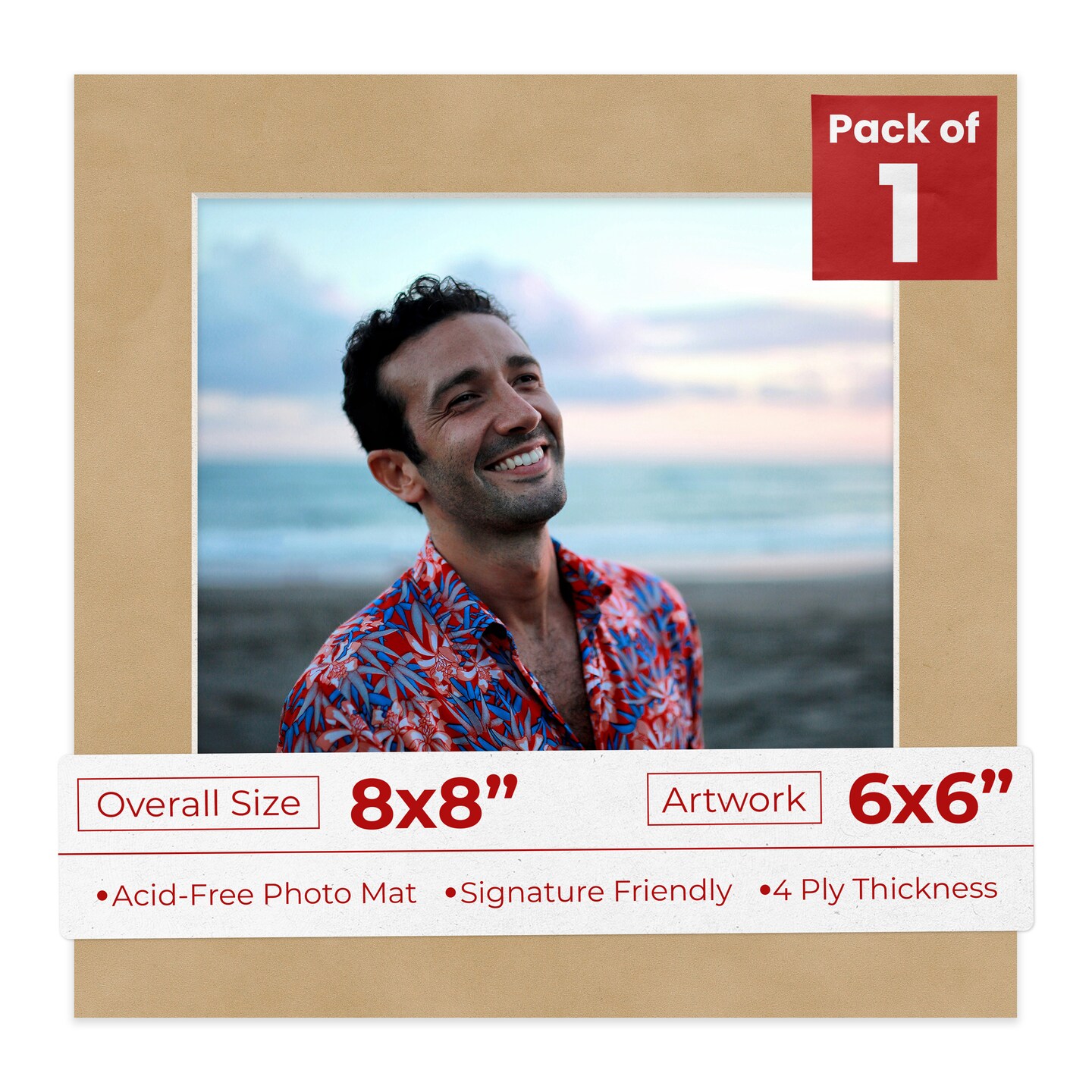 Beige Suede Mat Board for 8x8 Frames - Fits 6x6 Photos