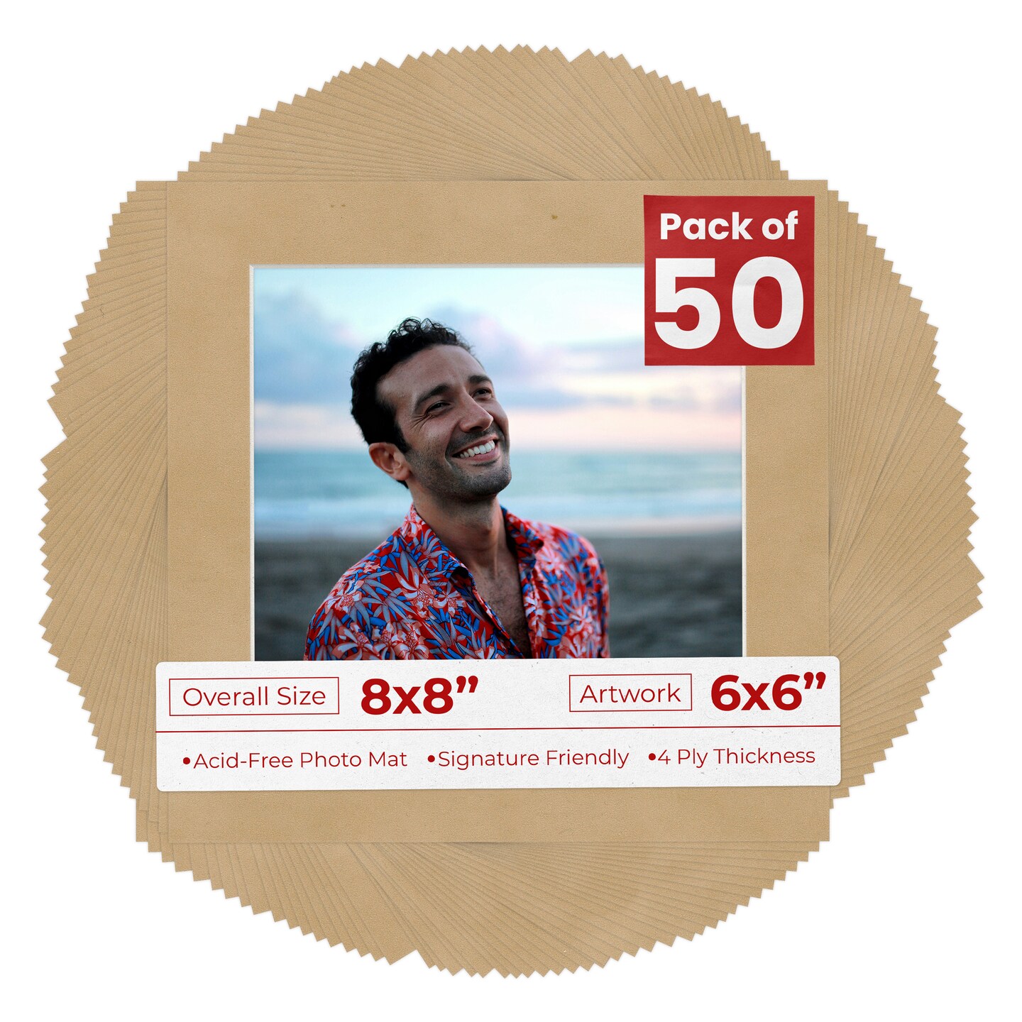 Beige Suede Mat Board for 8x8 Frames - Fits 6x6 Photos