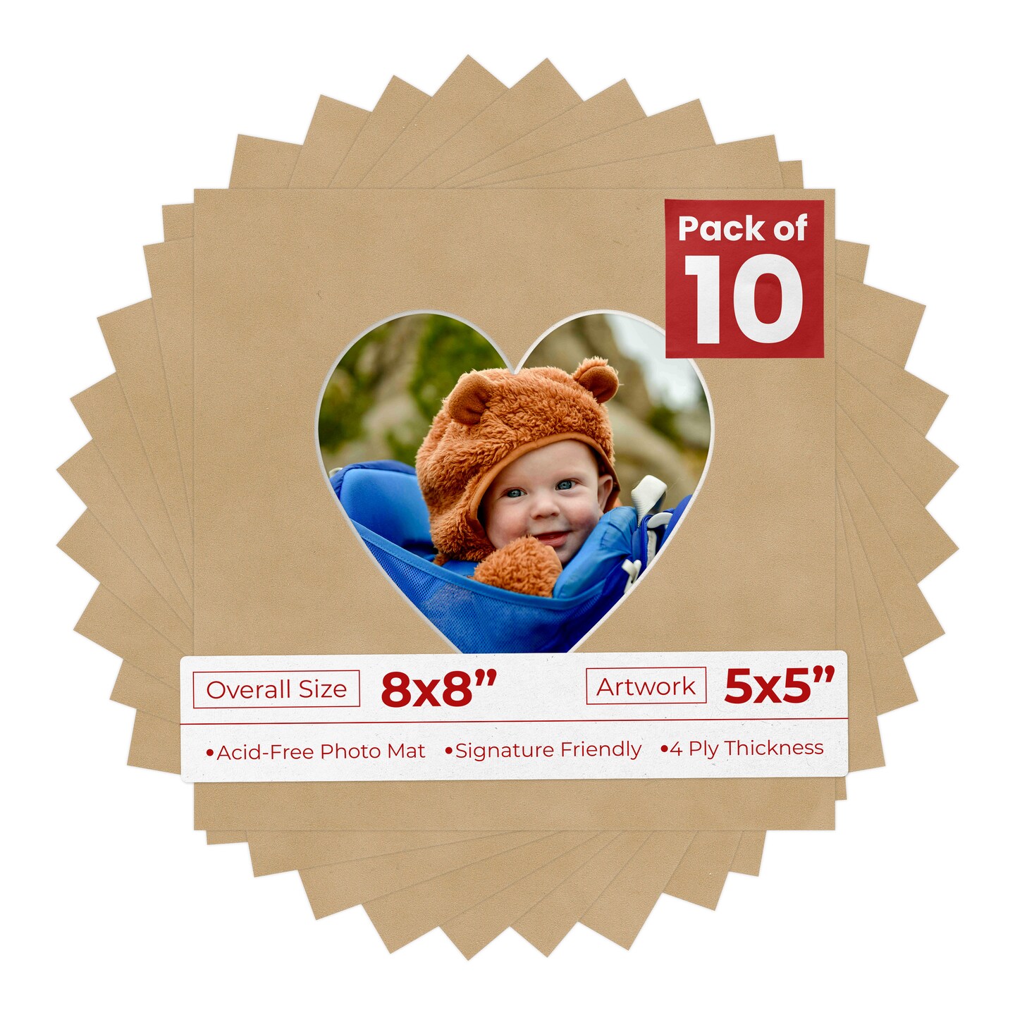 Beige Suede Mat Board for 8x8 Frames - Heart Opening for 5x5 Photos