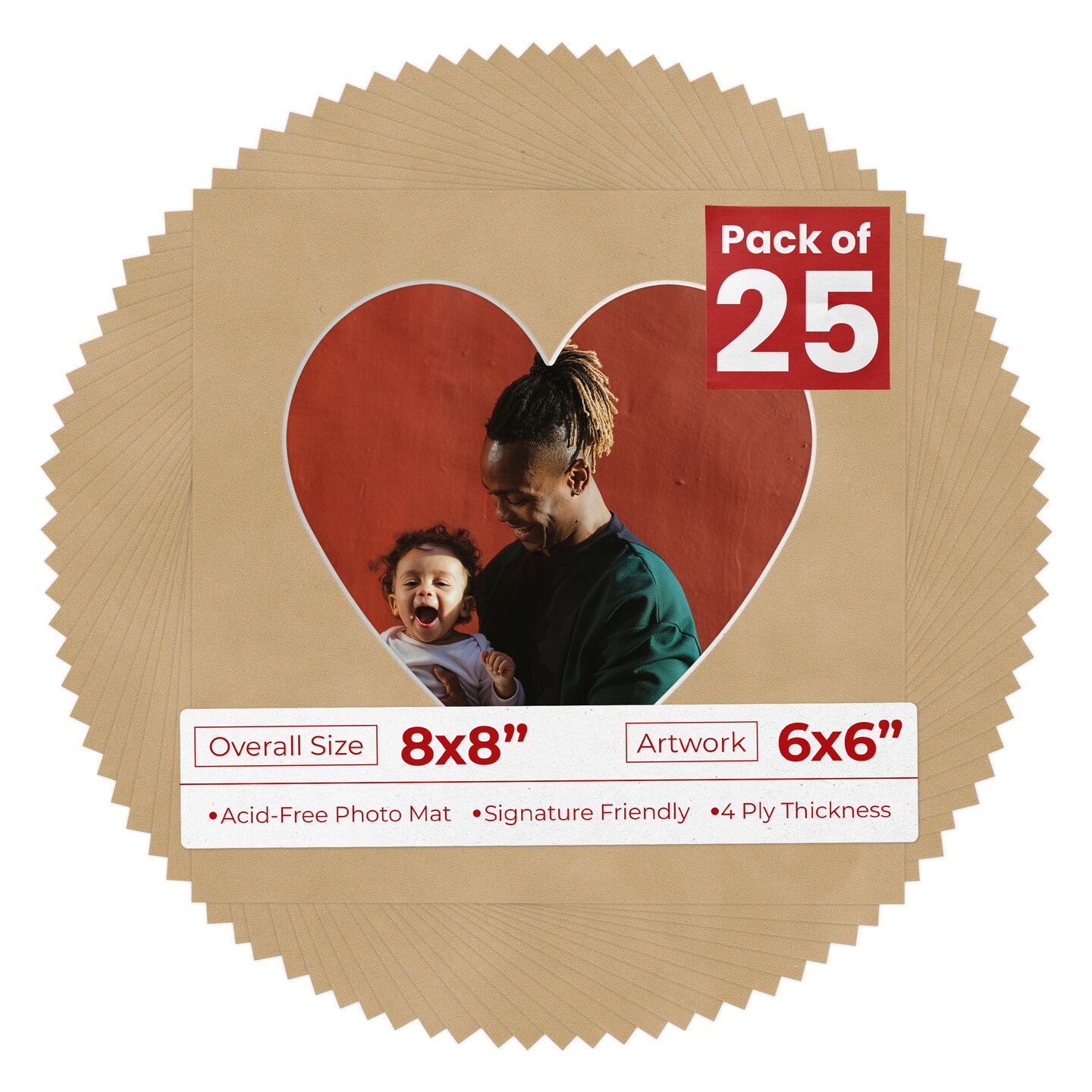 Beige Suede Mat Board for 8x8 Frames - Heart Opening for 6x6 Photos