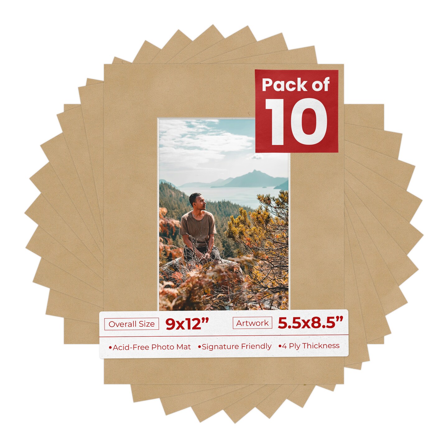 Beige Suede Mat Board for 9x12 Frames - Fits 5.5x8.5 Photos