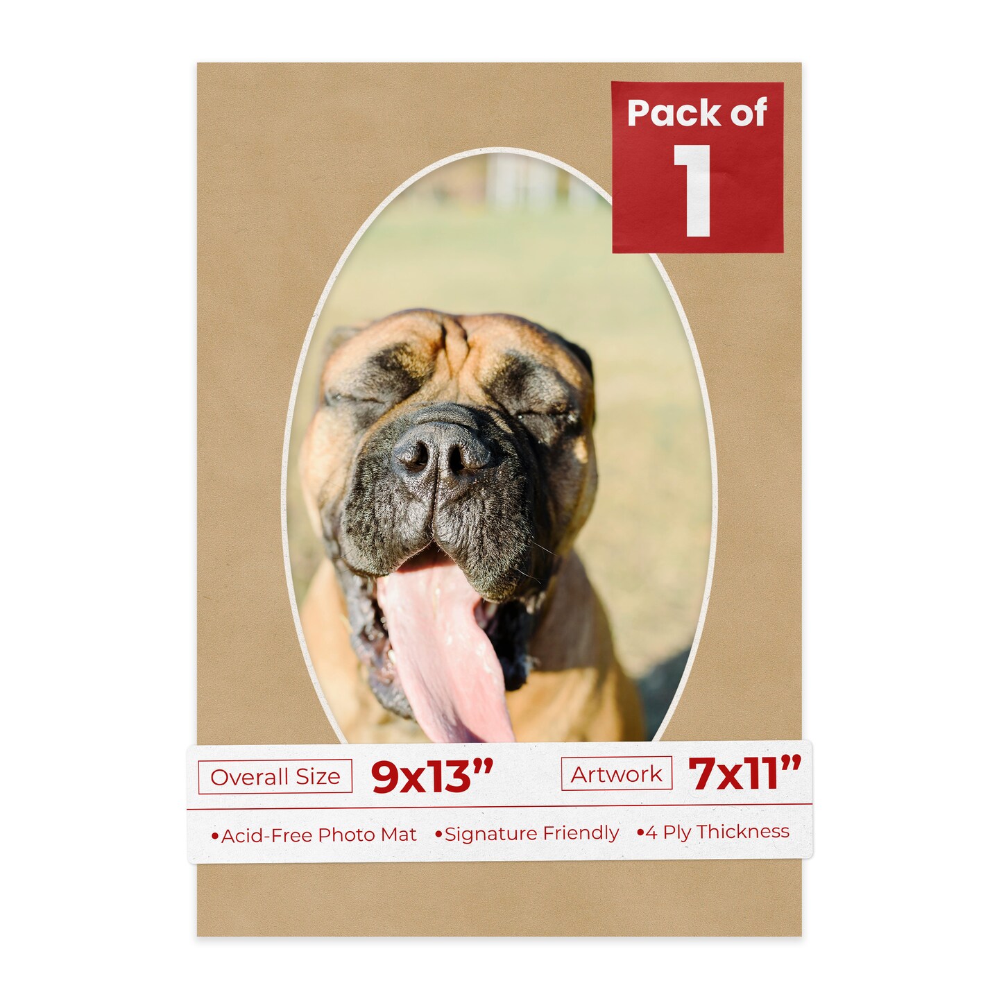 Beige Suede Mat Board for 9x13 Frames - Oval Opening for 7x11 Photos