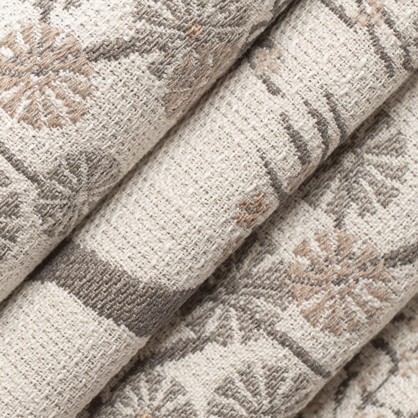 Beige Taupe Performance Grade Global-Inspired Toile Woven Pattern Upholstery Fabric by The Yard - SKU: Elmira Sandstone