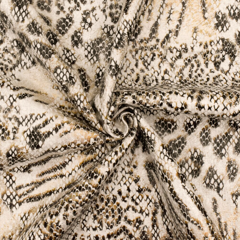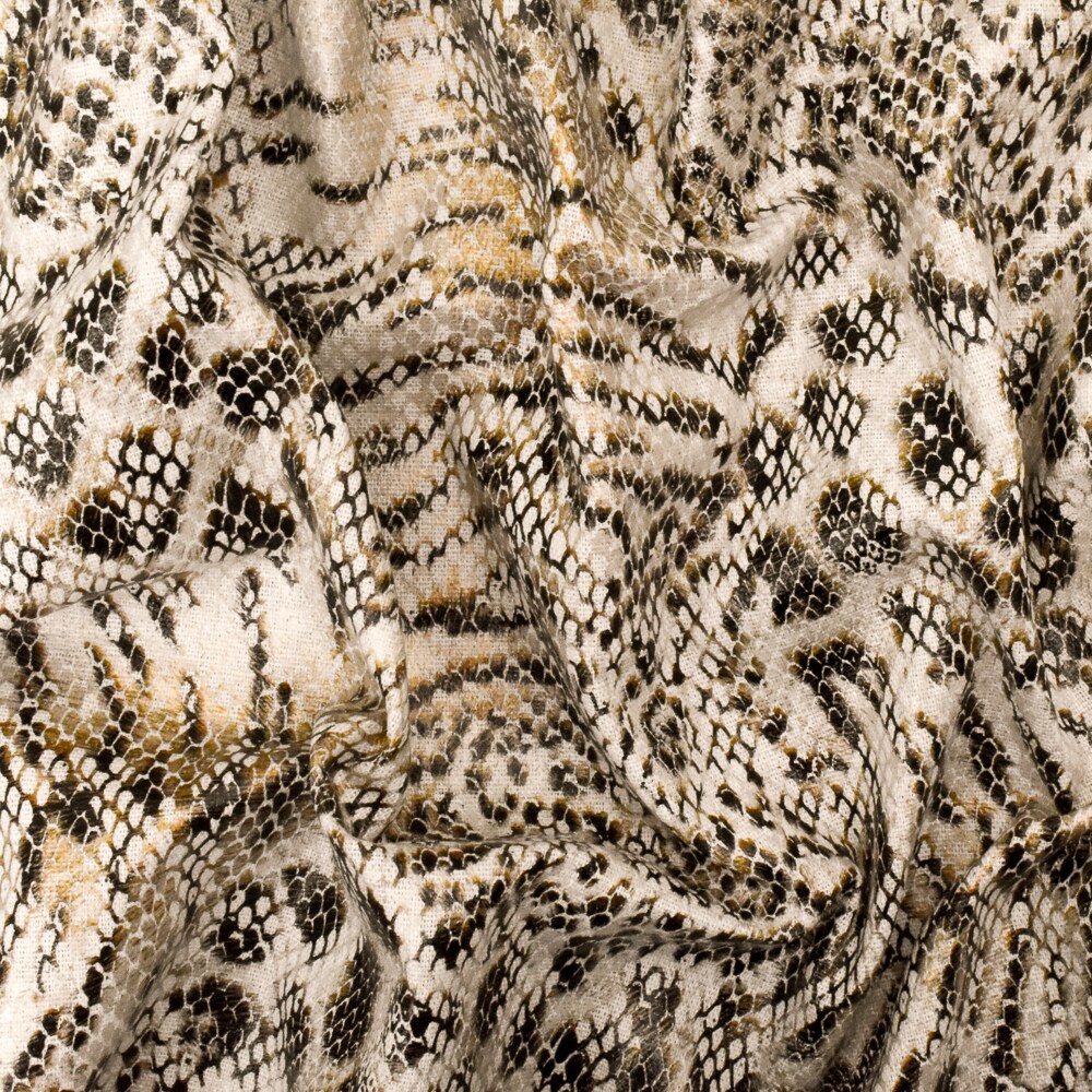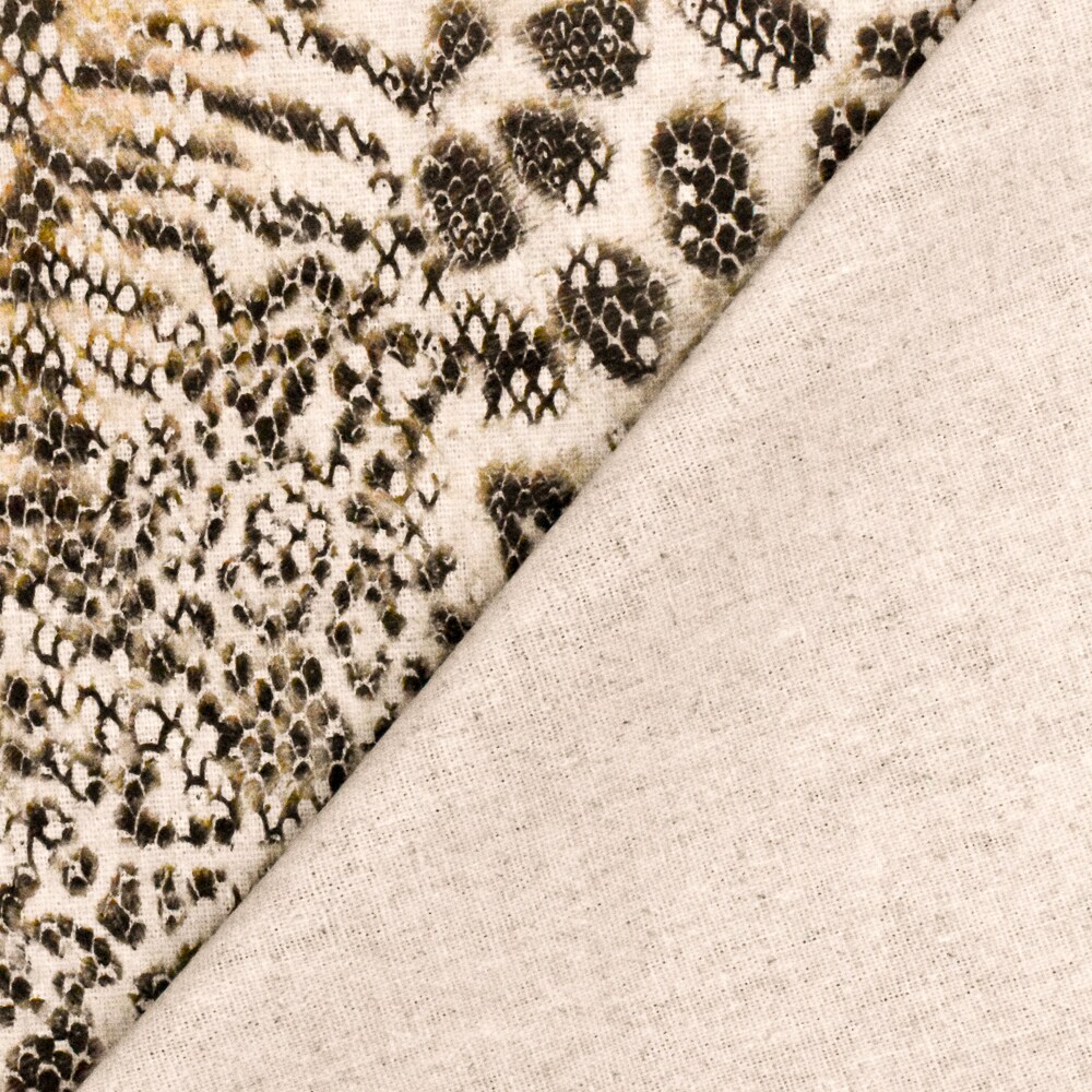 Beige-Black-Multi Reptile Skin Printed Linen Blend Woven Fabric By the Yard