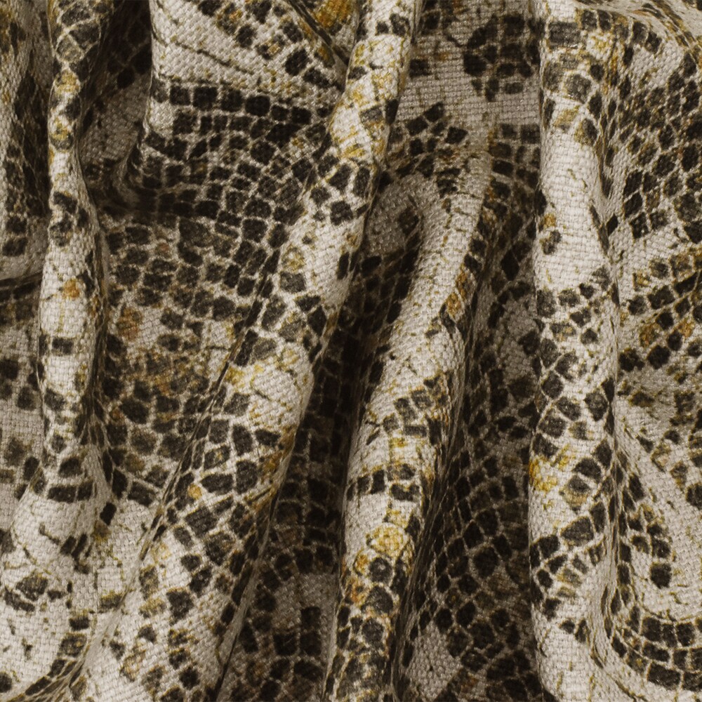 Beige-Multi Moroccan Tile Printed Linen Basket Canvas Decorating Fabric By the Yard